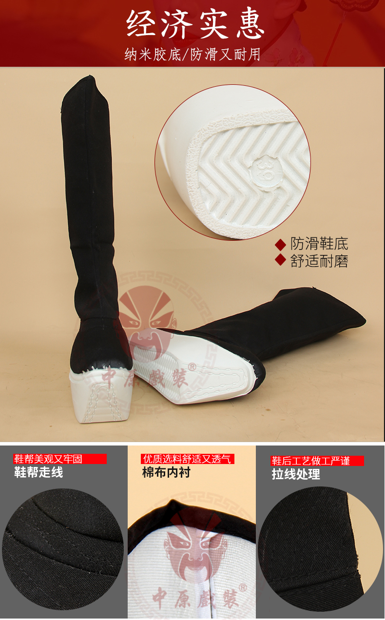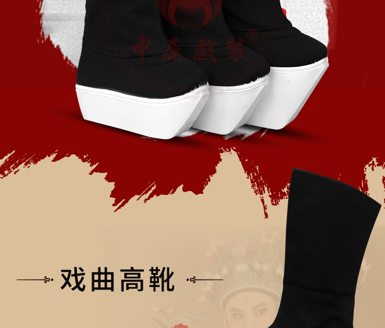 商品名称:中原戏装戏曲高靴纳米胶底小生武生厚底靴朝靴官靴京剧戏剧鞋靴子