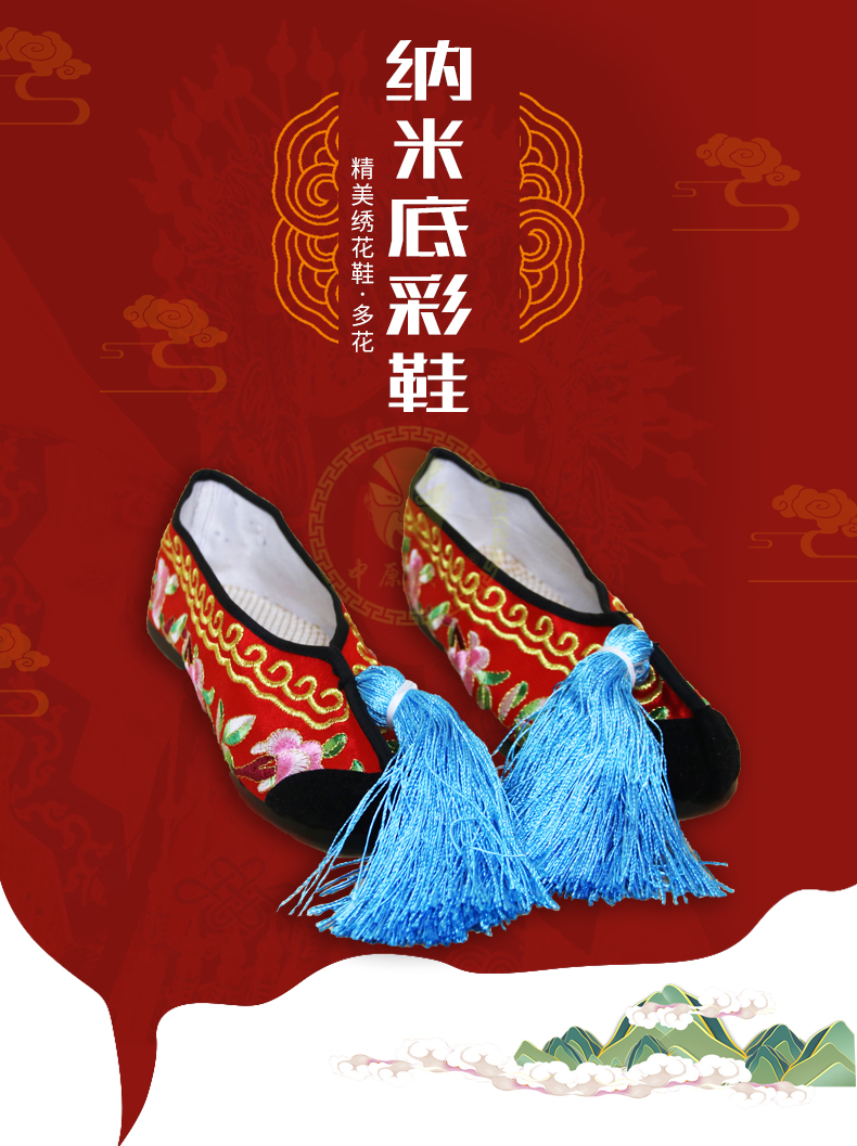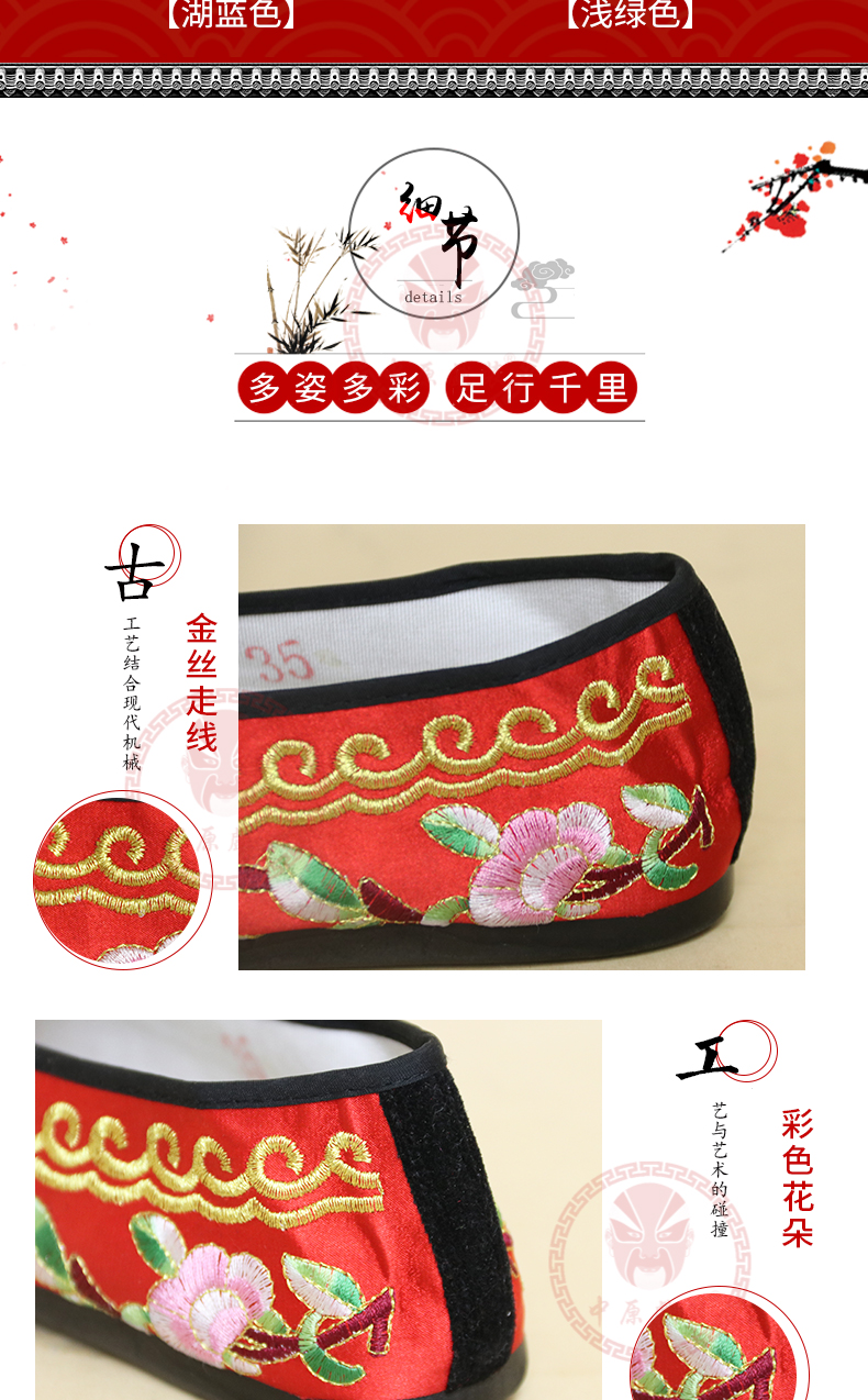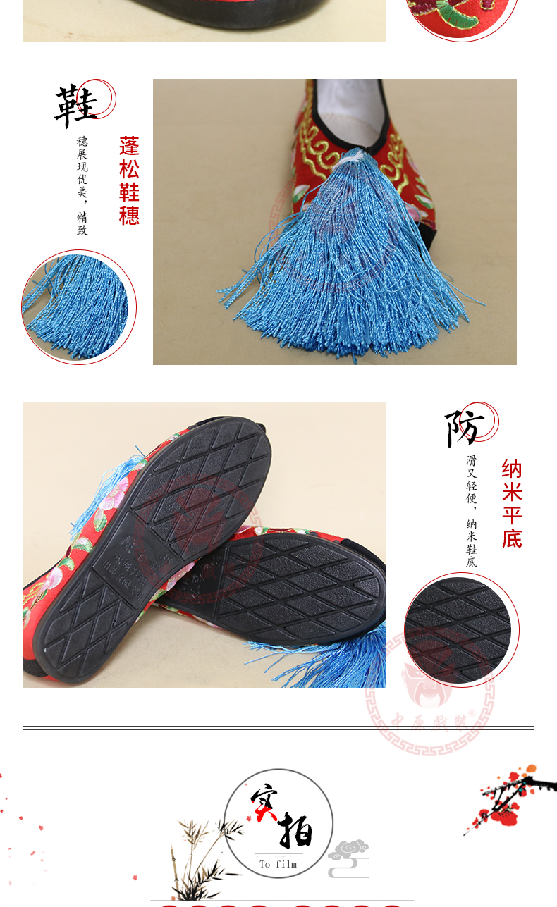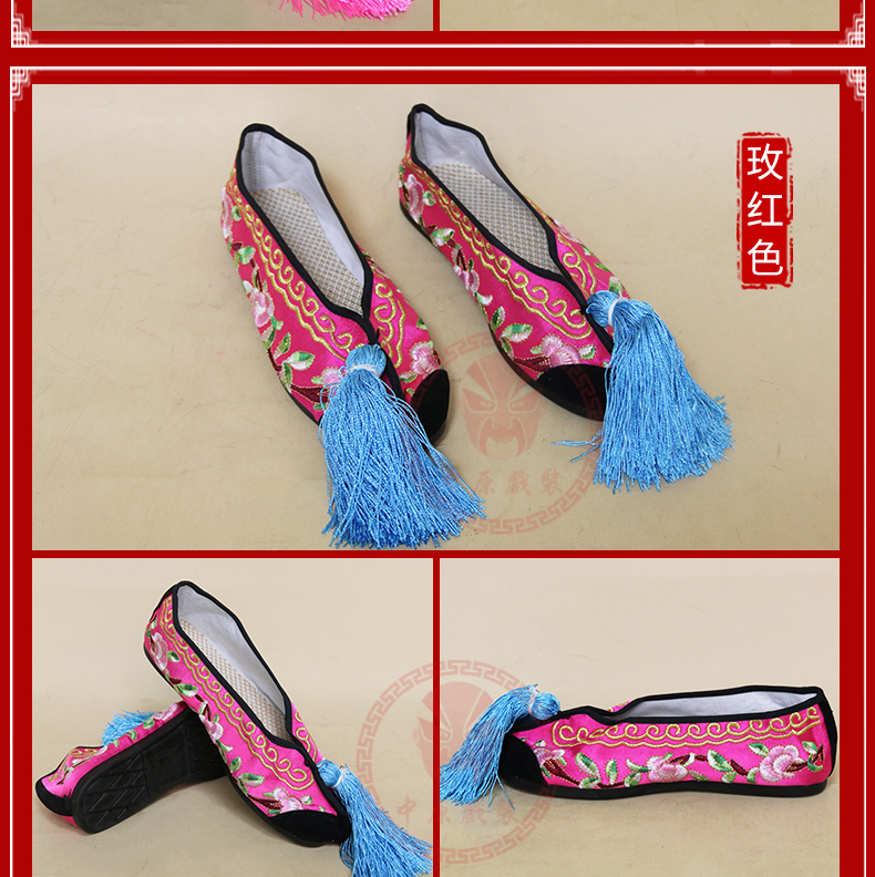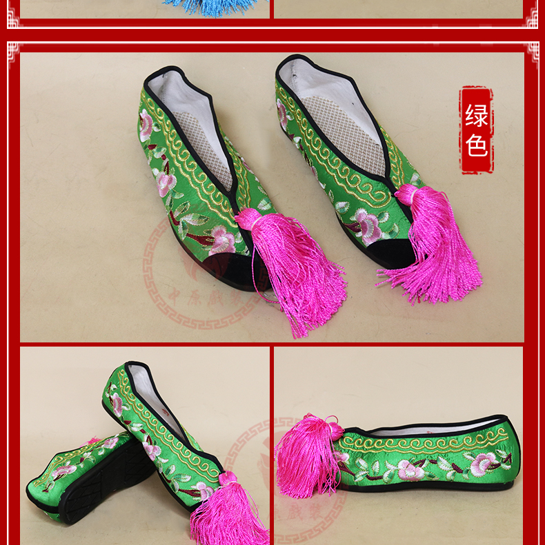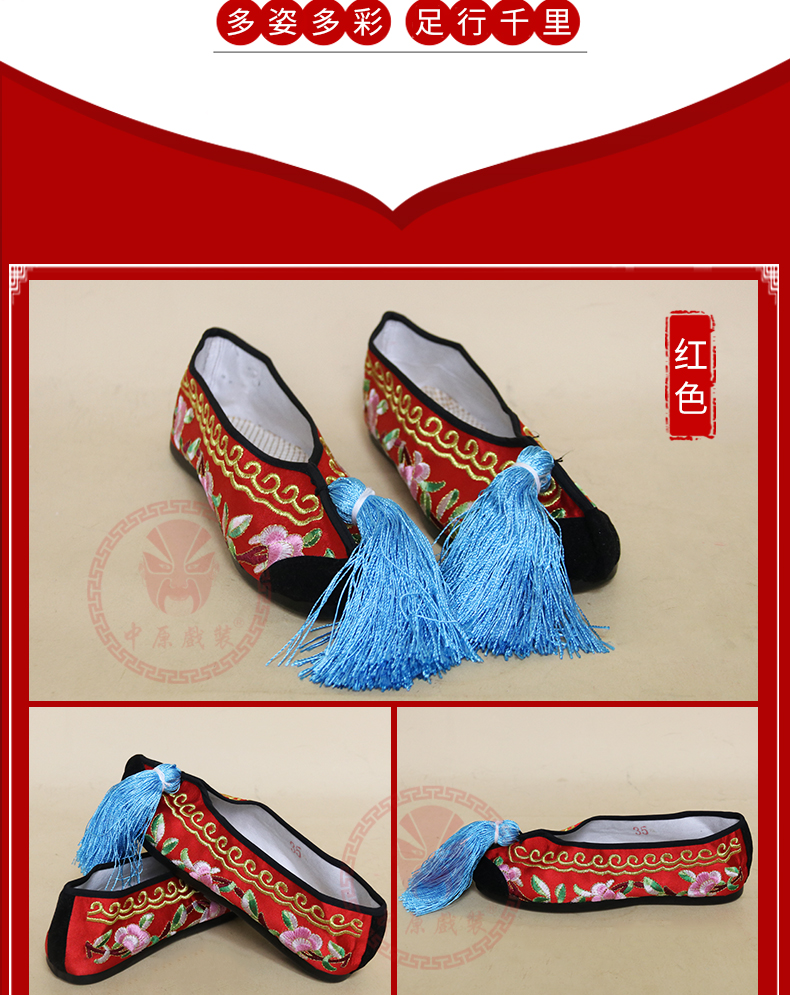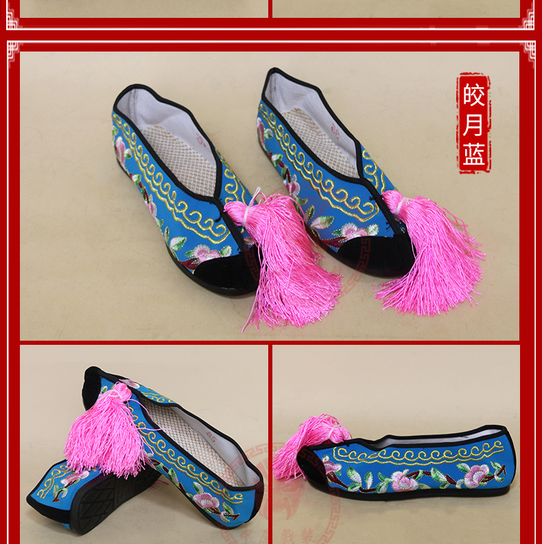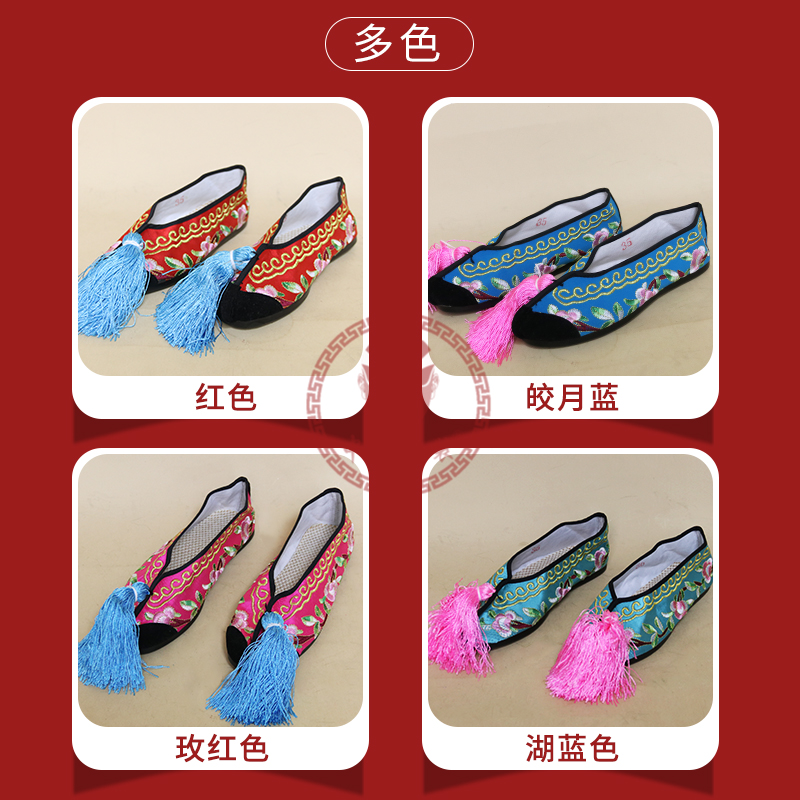 商品名称:中原戏装戏曲彩鞋青衣花旦小姐绣花鞋戏鞋女古装纳米胶底平底彩鞋