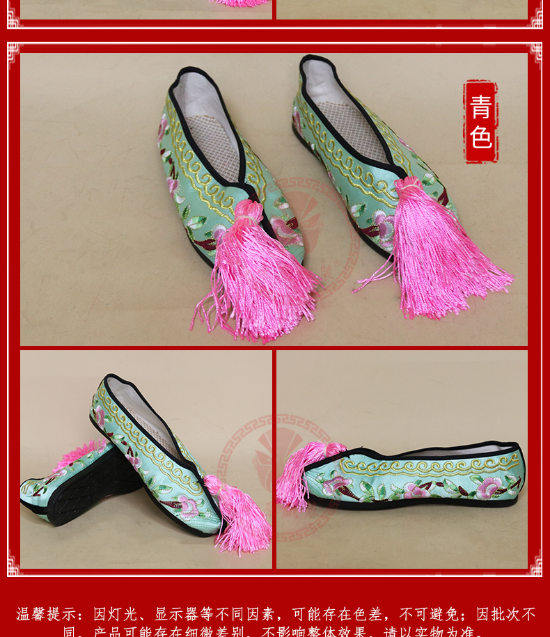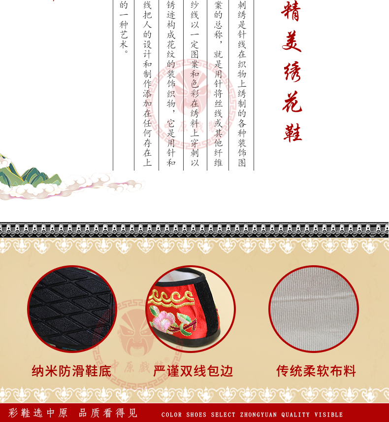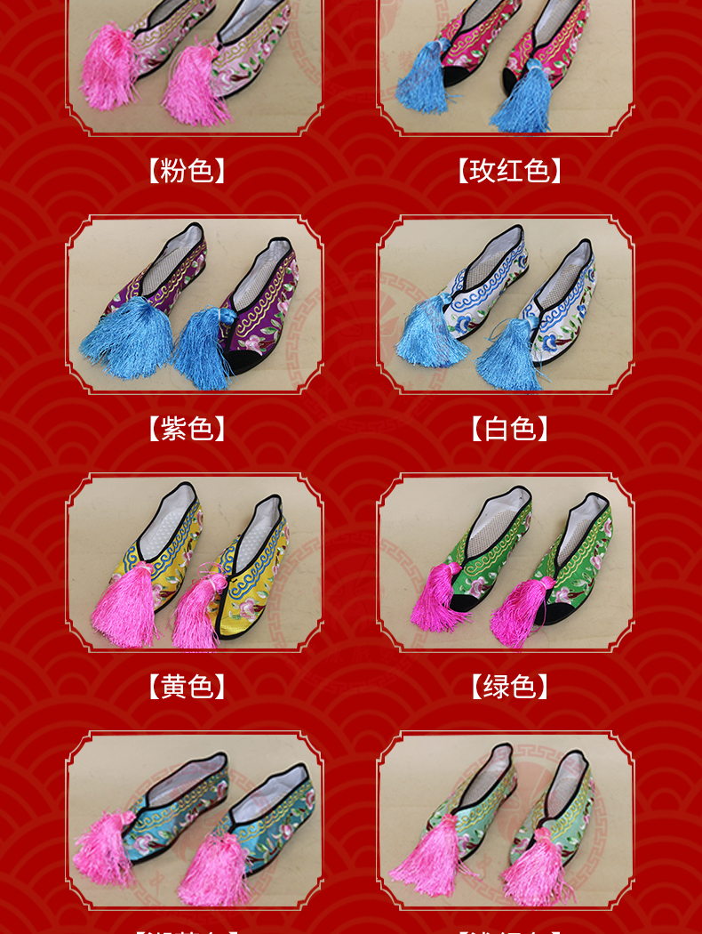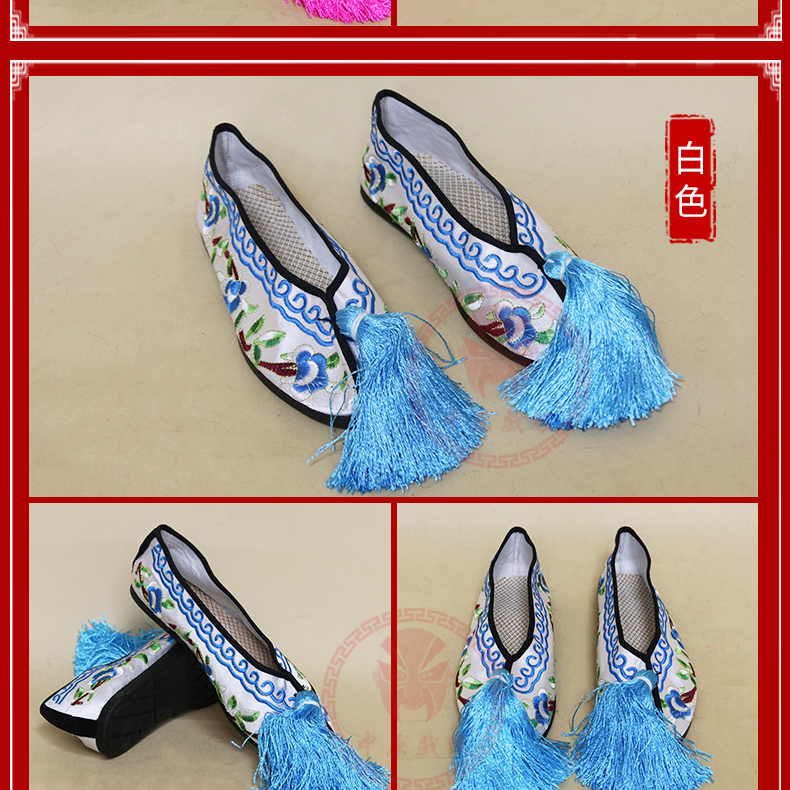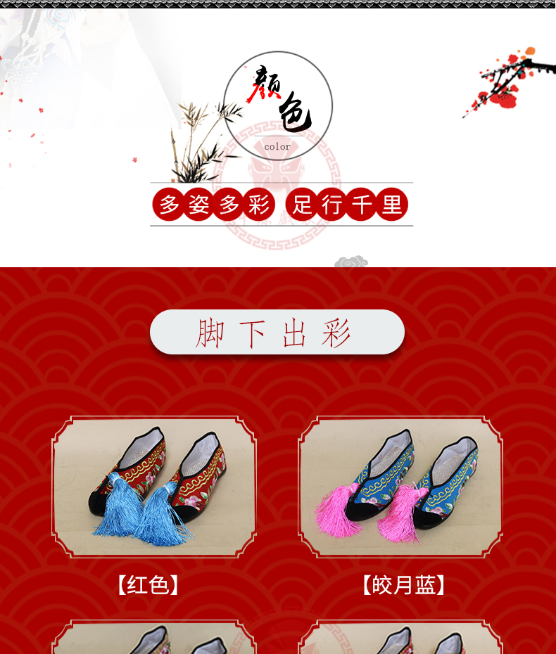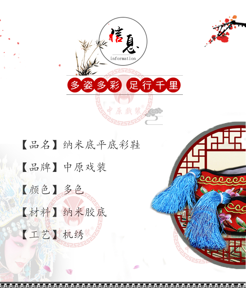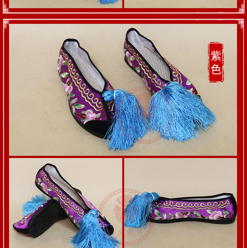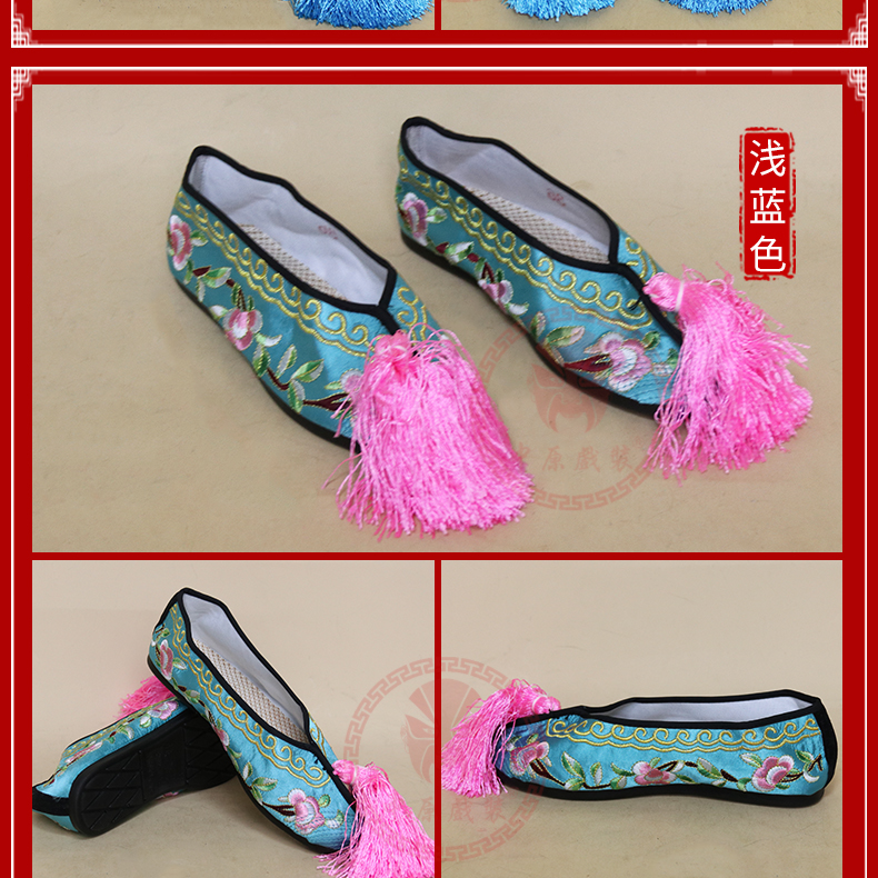 商品名称:中原戏装戏曲彩鞋青衣花旦小姐绣花鞋戏鞋女古装纳米胶底平底彩鞋