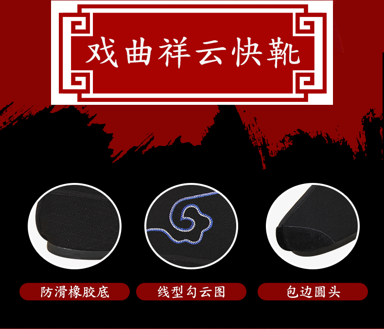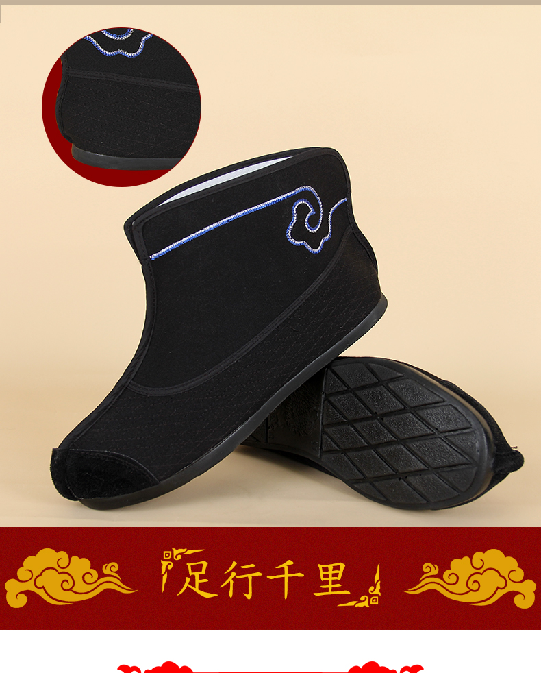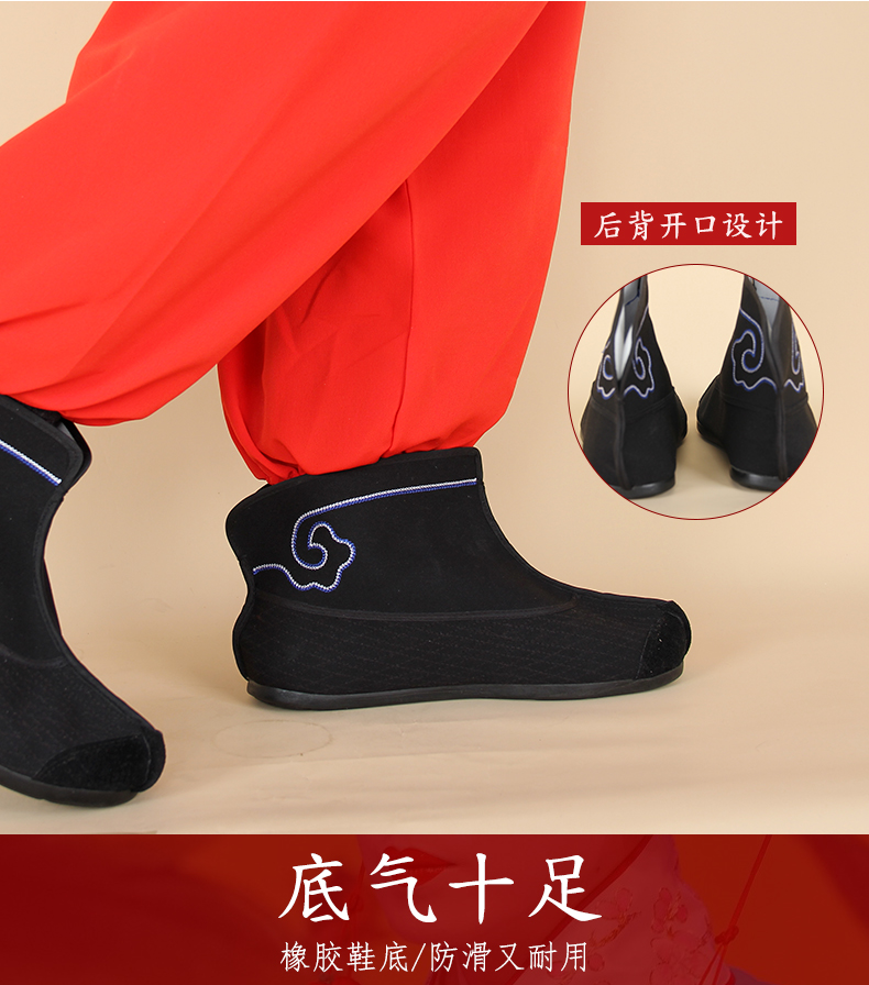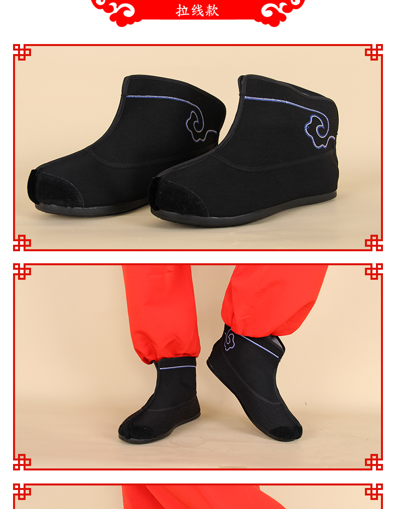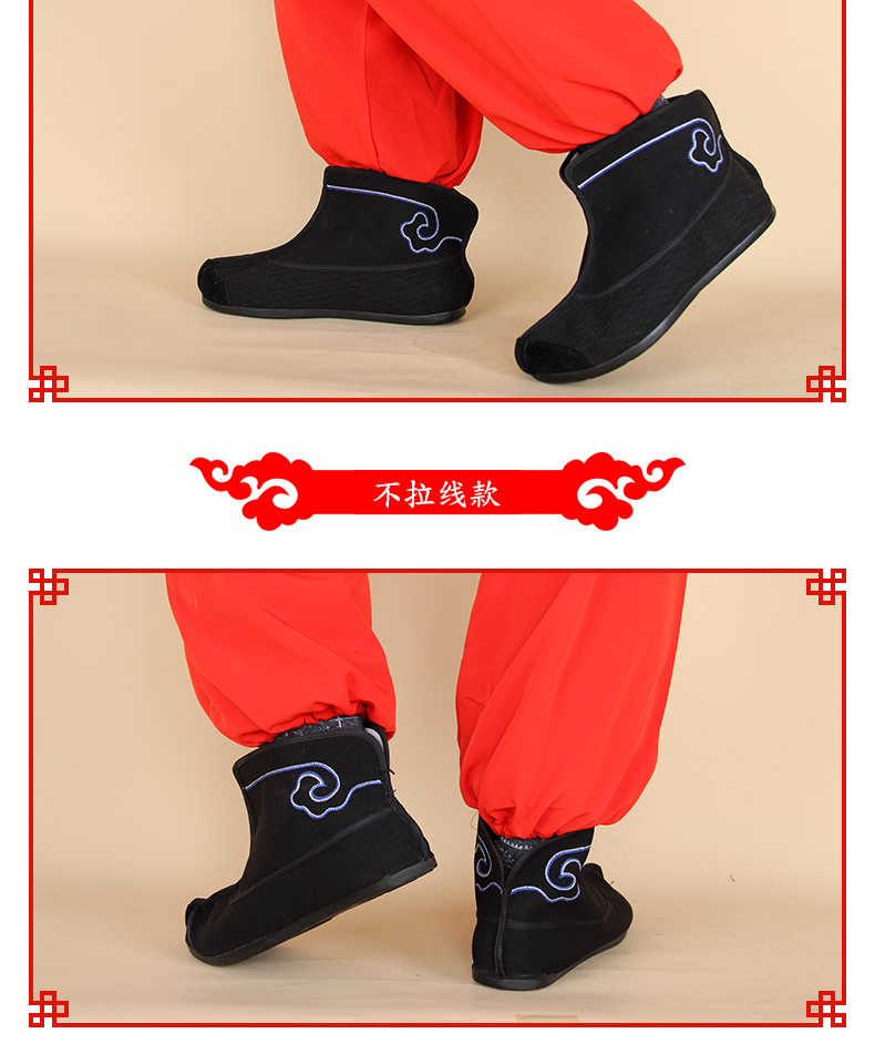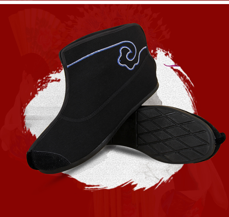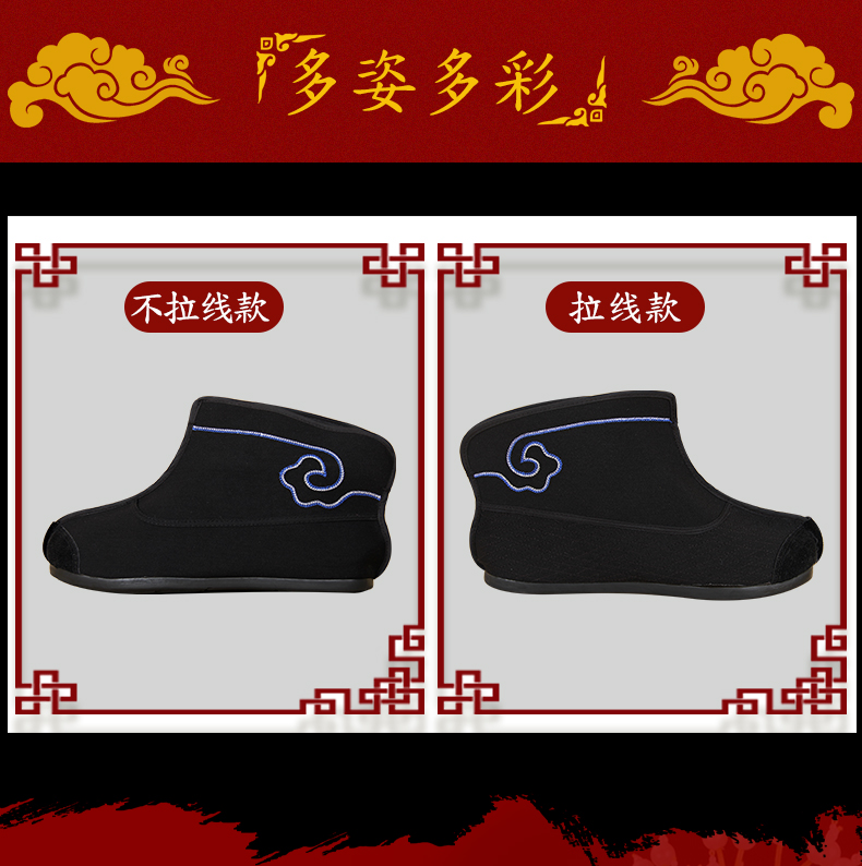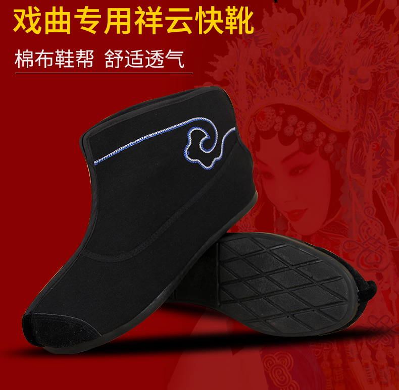 商品名称:中原戏装祥云橡胶底快靴打靴兵靴练功鞋戏曲专用鞋戏剧演出普快