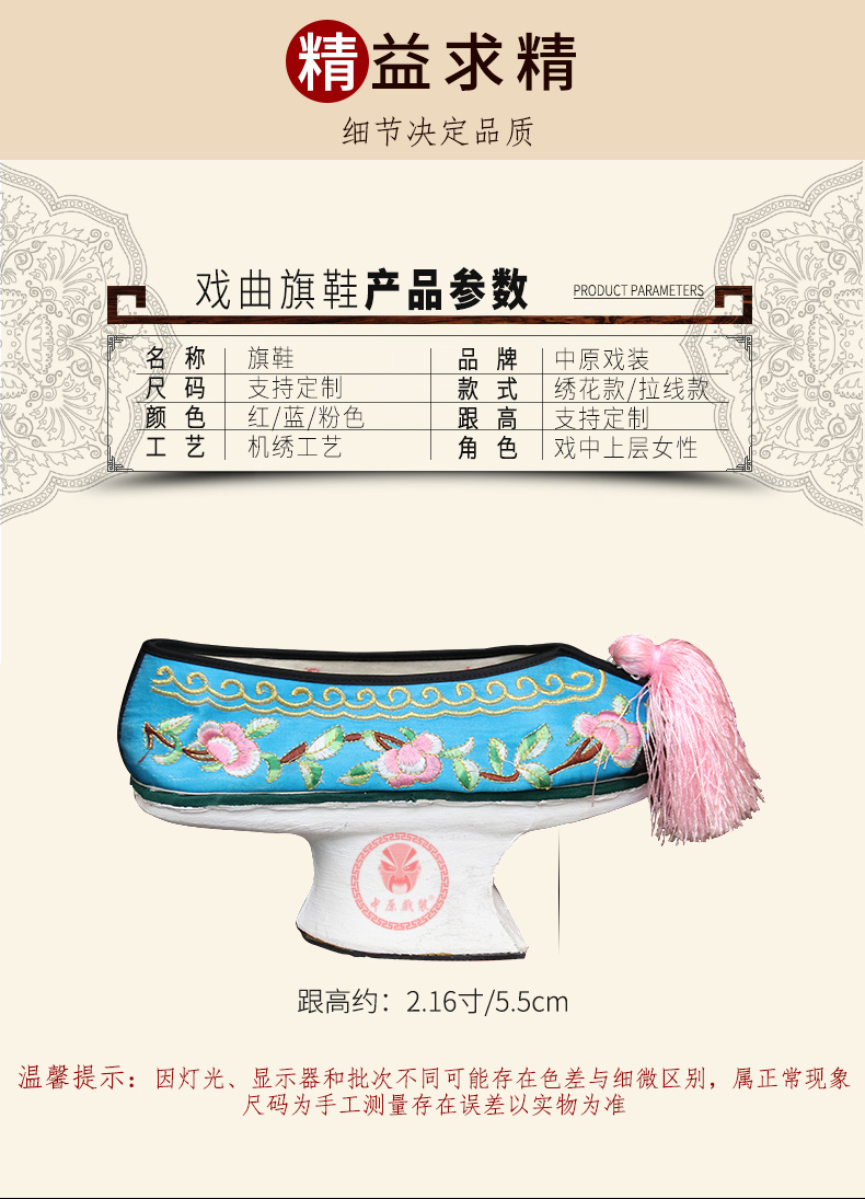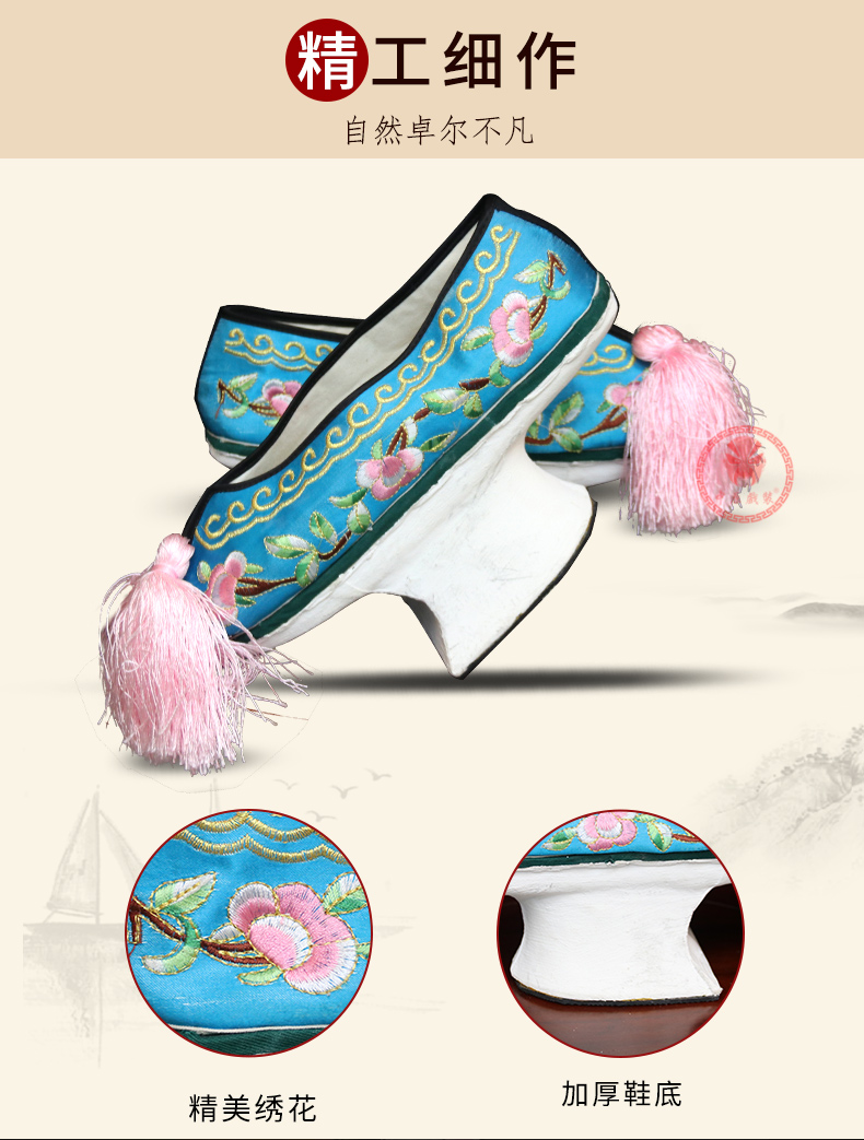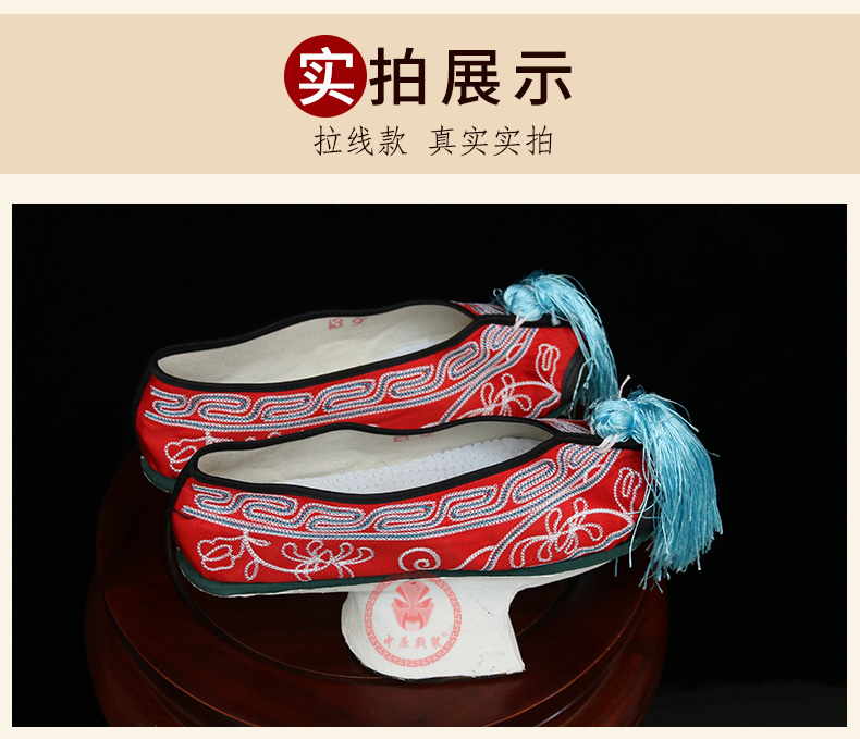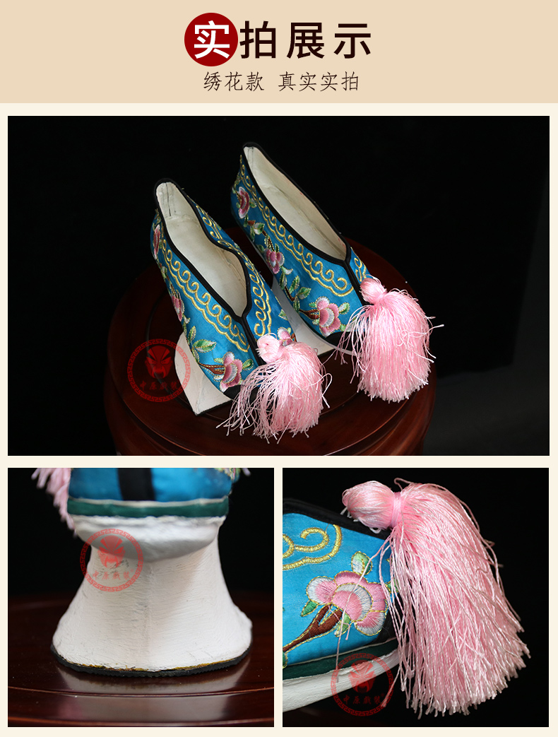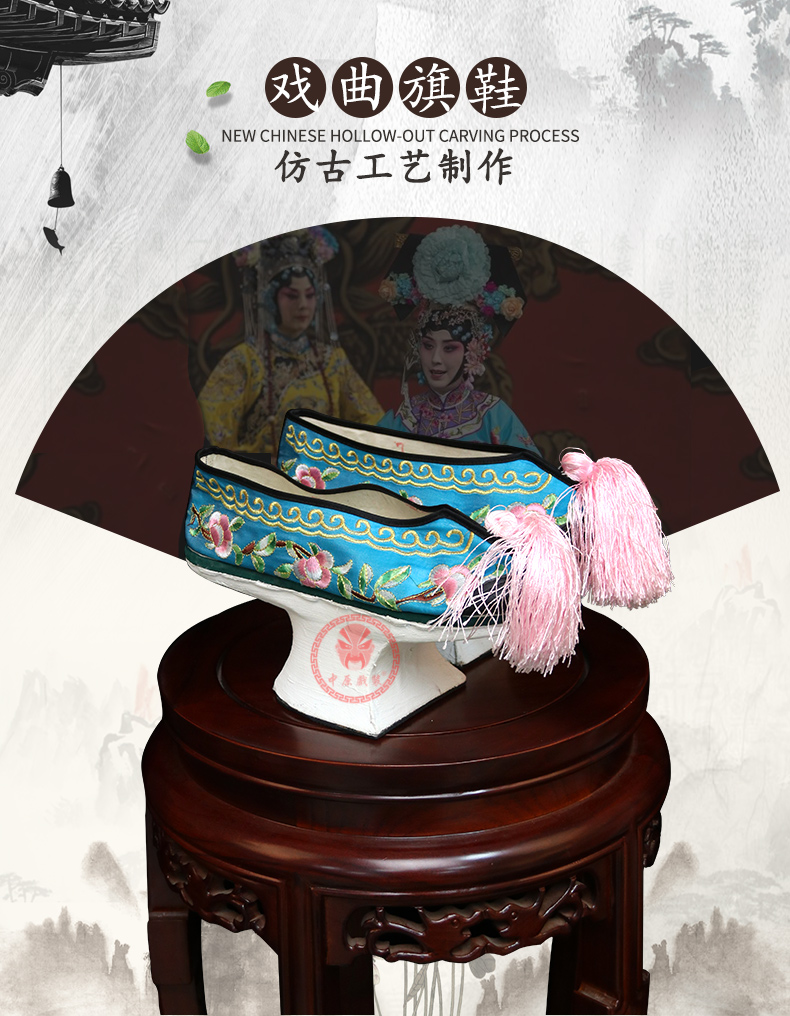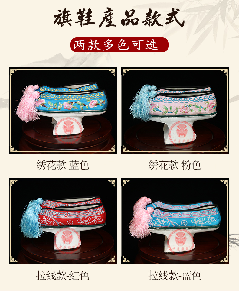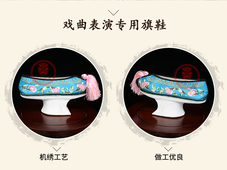 商品名称:中原戏装旗鞋戏曲花盆底古装格格贵妃娘娘满族鞋清代女绣花彩鞋