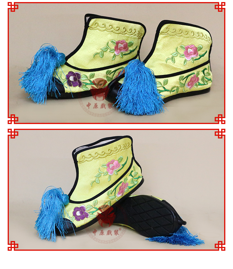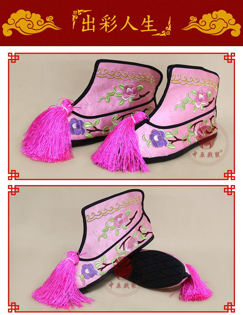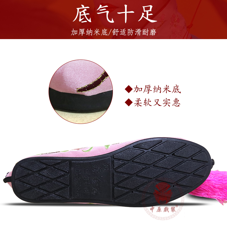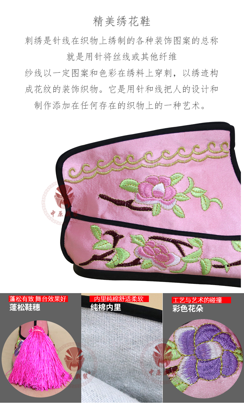 中原戏装戏曲鞋靴女彩快纳米胶底绣绣花彩快靴快靴女打鞋武旦靴子