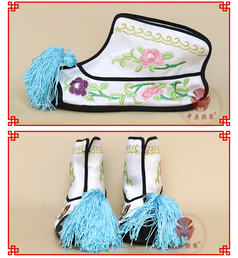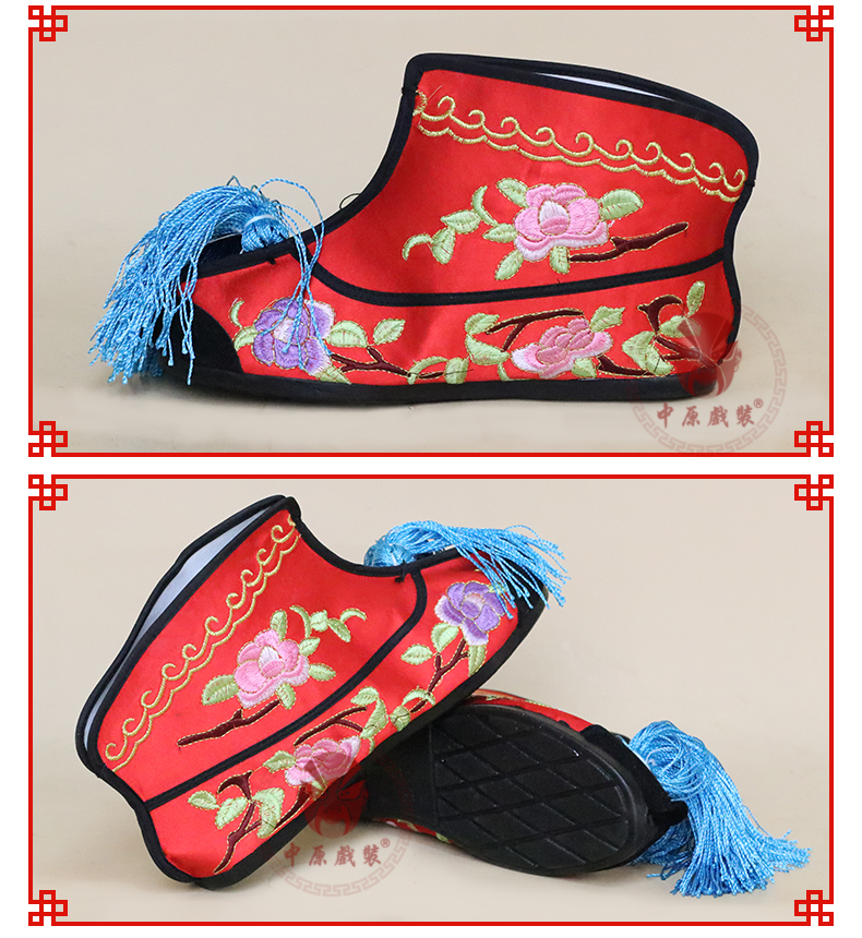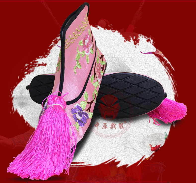 商品名称:中原戏装戏曲鞋靴女彩快纳米胶底绣绣花彩快靴快靴女打鞋武旦靴子