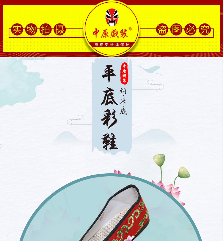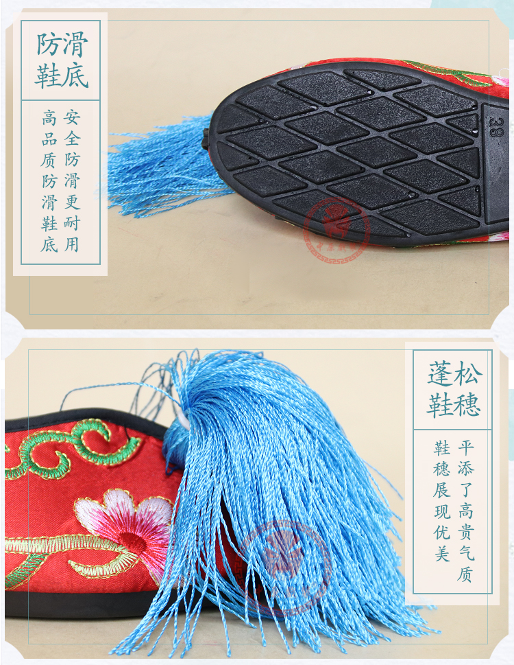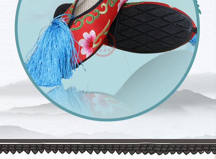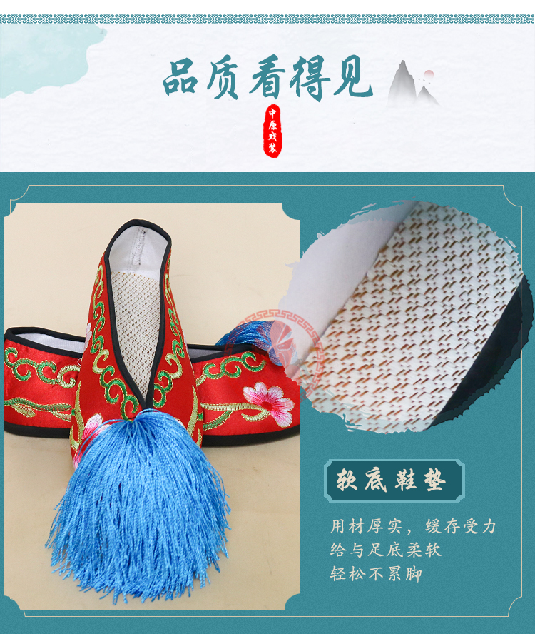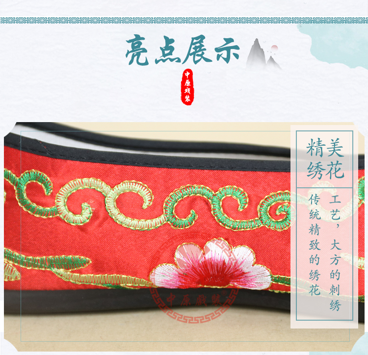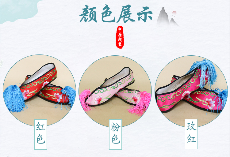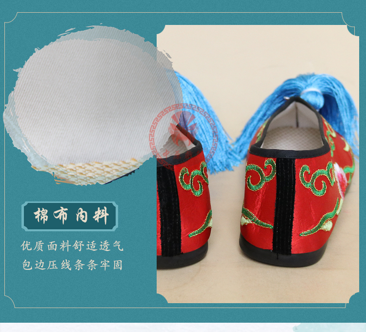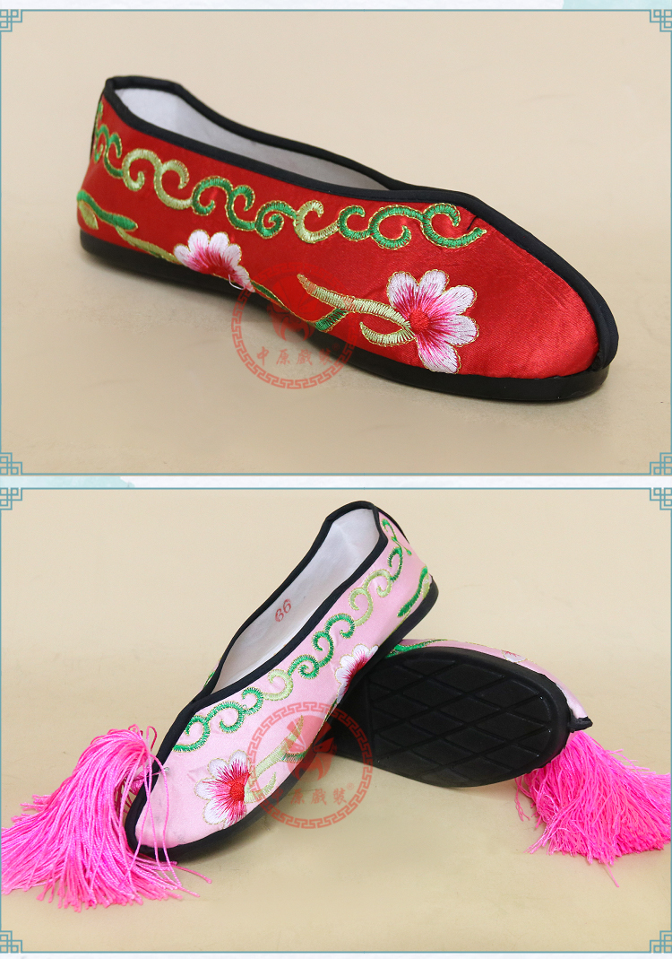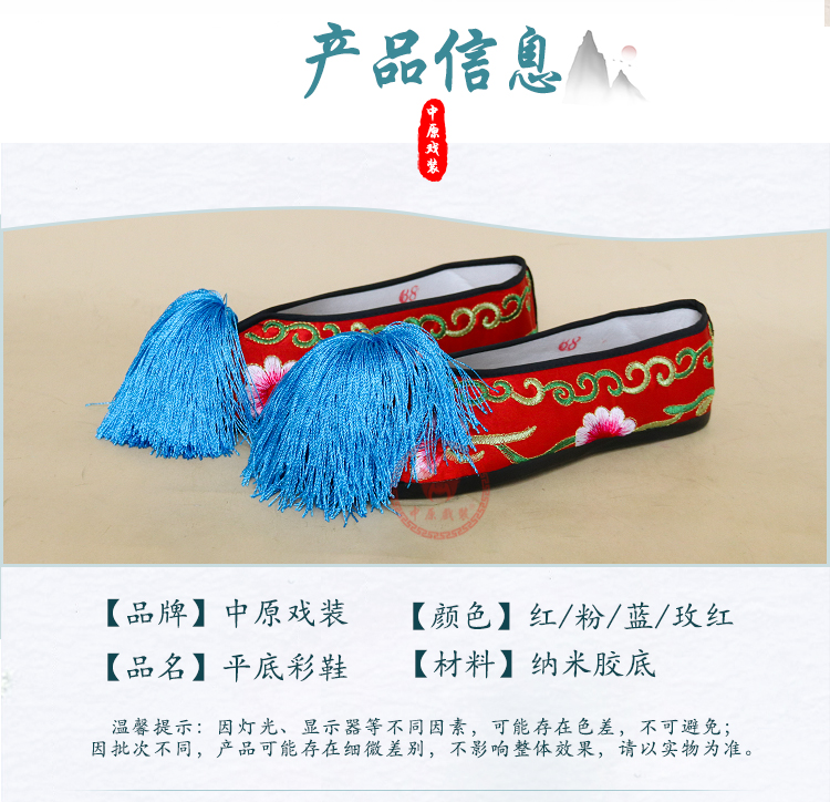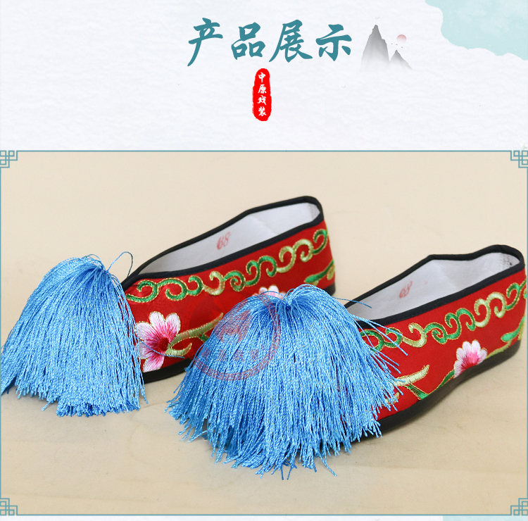 商品名称:中原戏装戏曲平底彩鞋青衣花旦小姐绣花鞋戏鞋女古装纳米胶底彩鞋