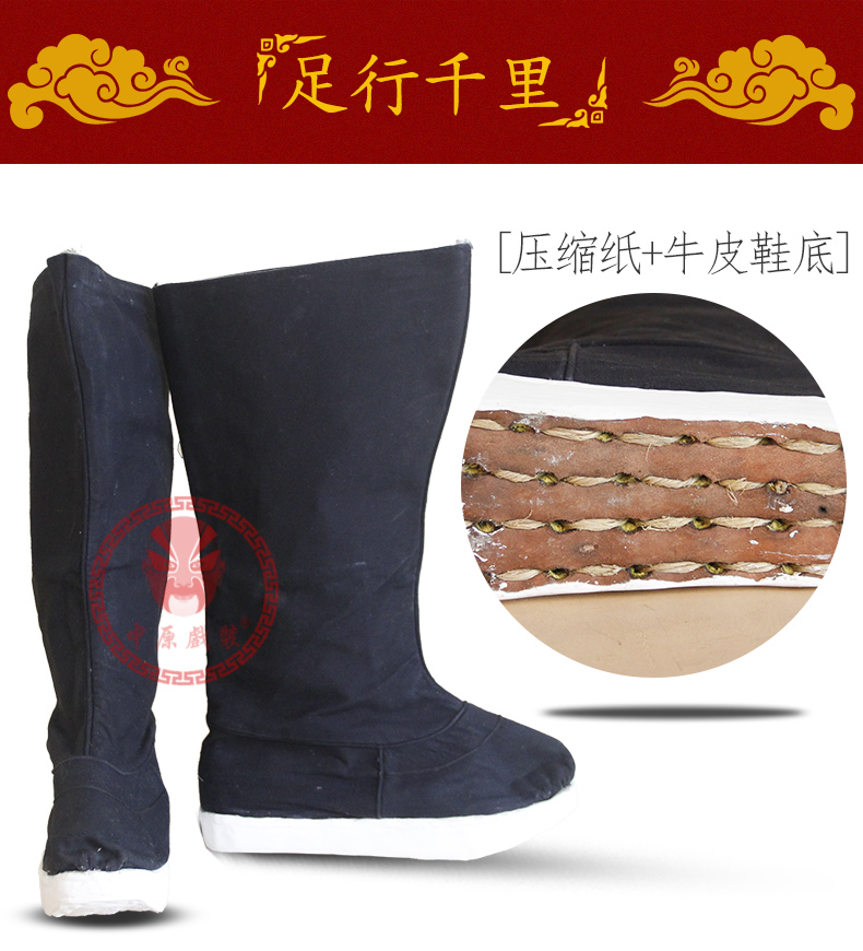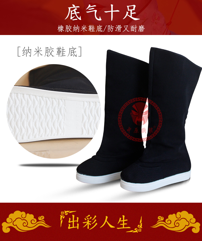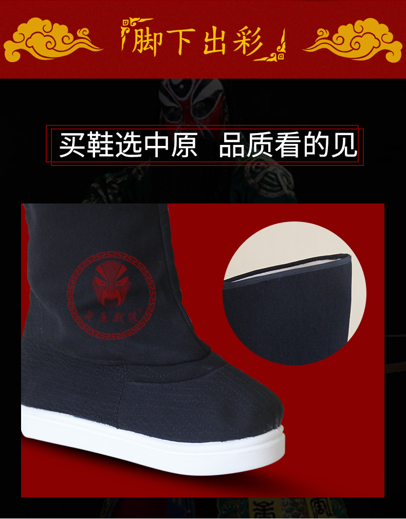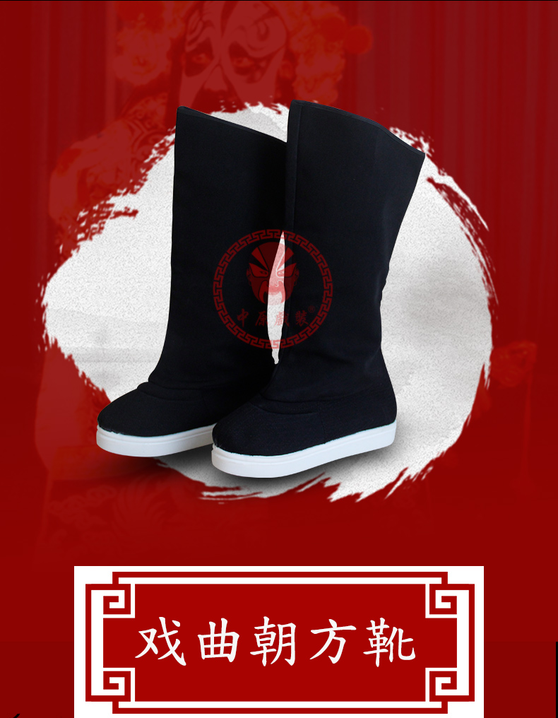 商品名称:中原戏装戏曲男高靴朝方鞋京剧舞台演出古装汉服鞋官靴武生厚底鞋