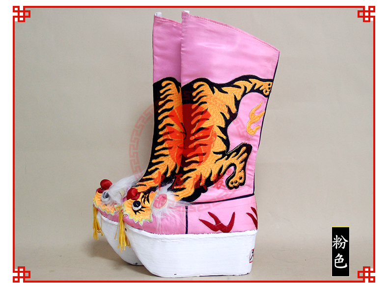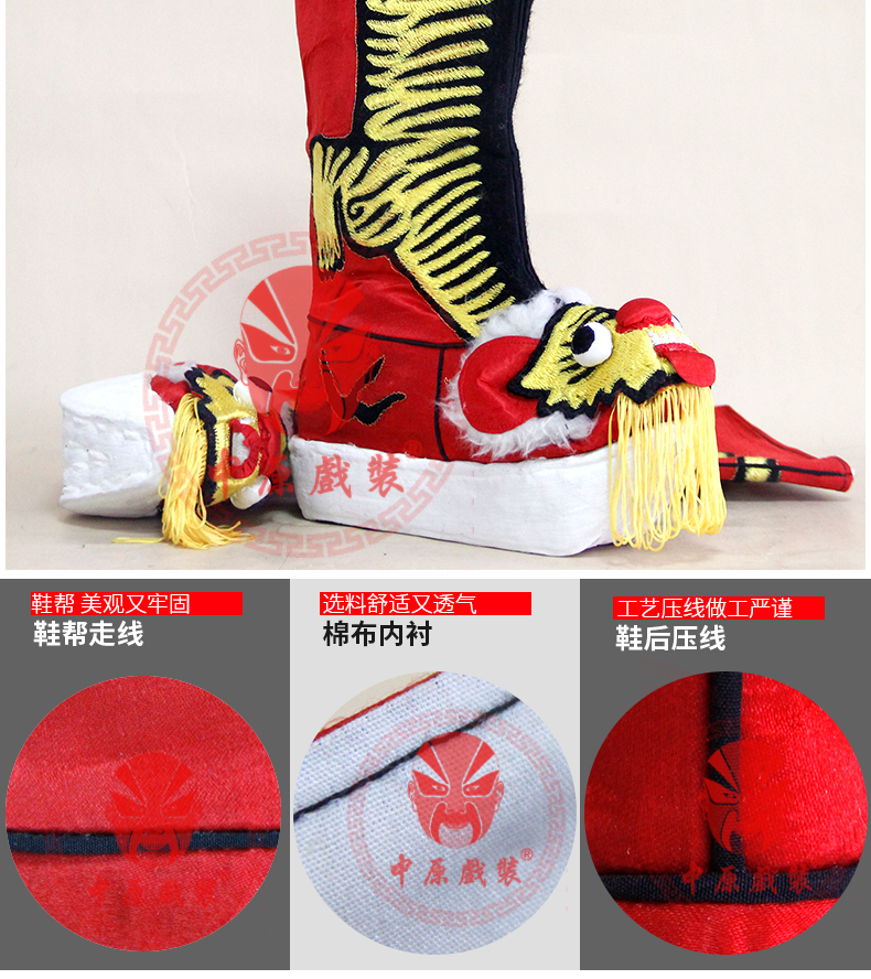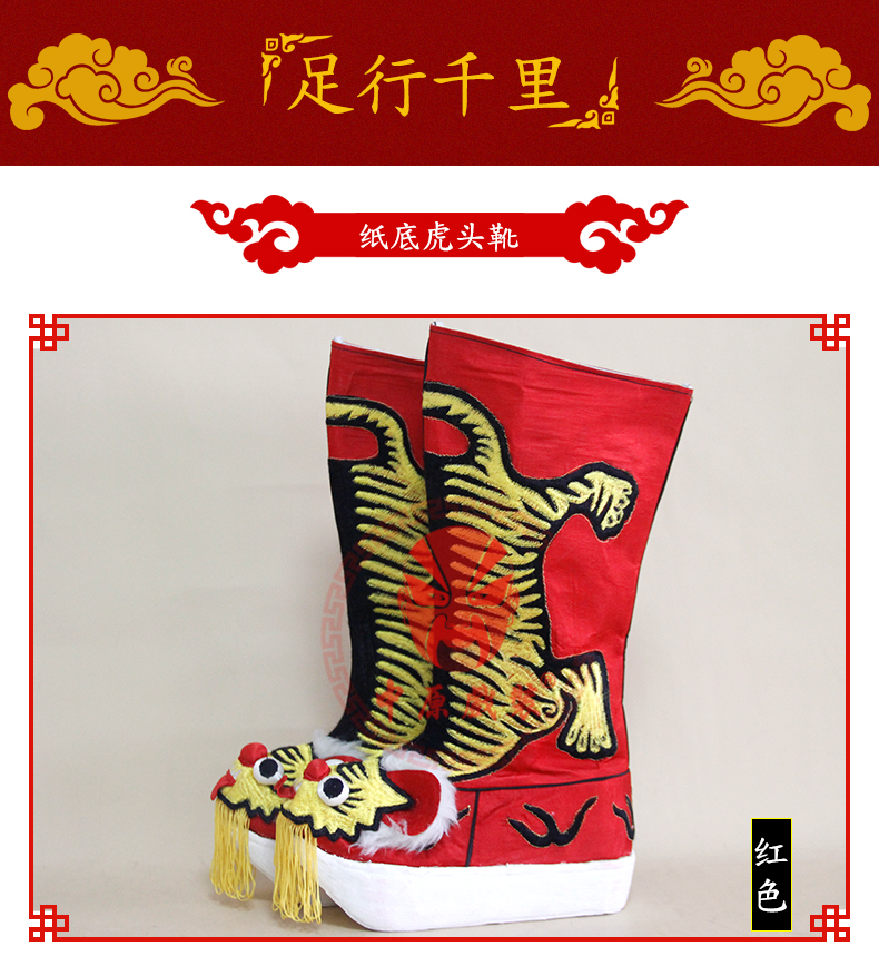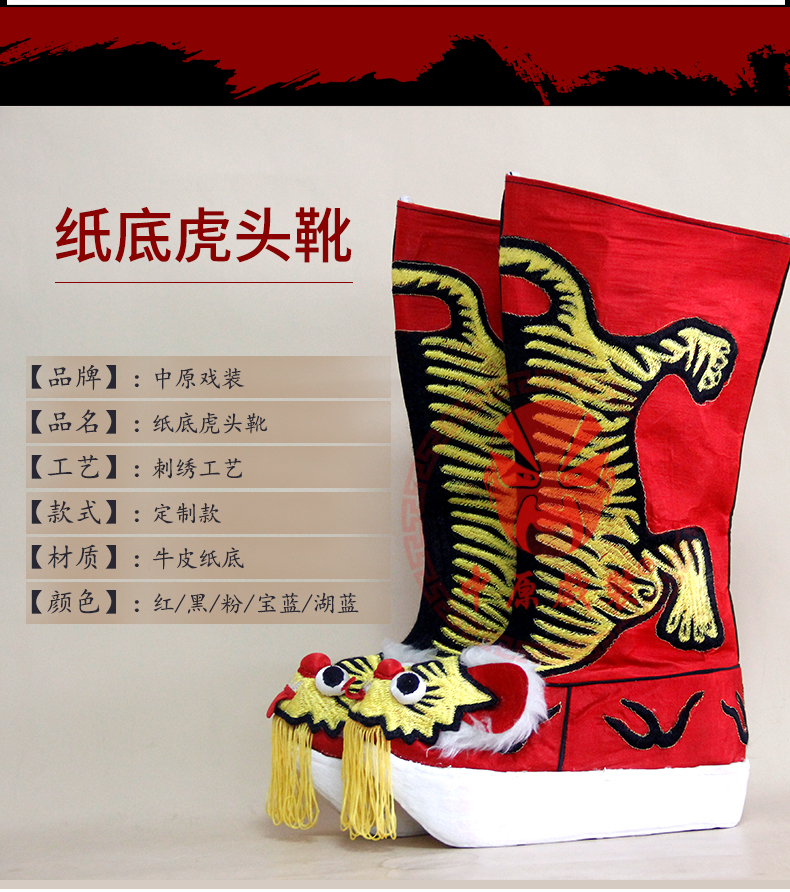 商品名称:中原戏装戏曲厚底虎头靴变脸武生武将军虎头靴陆文龙牛皮纸底靴子