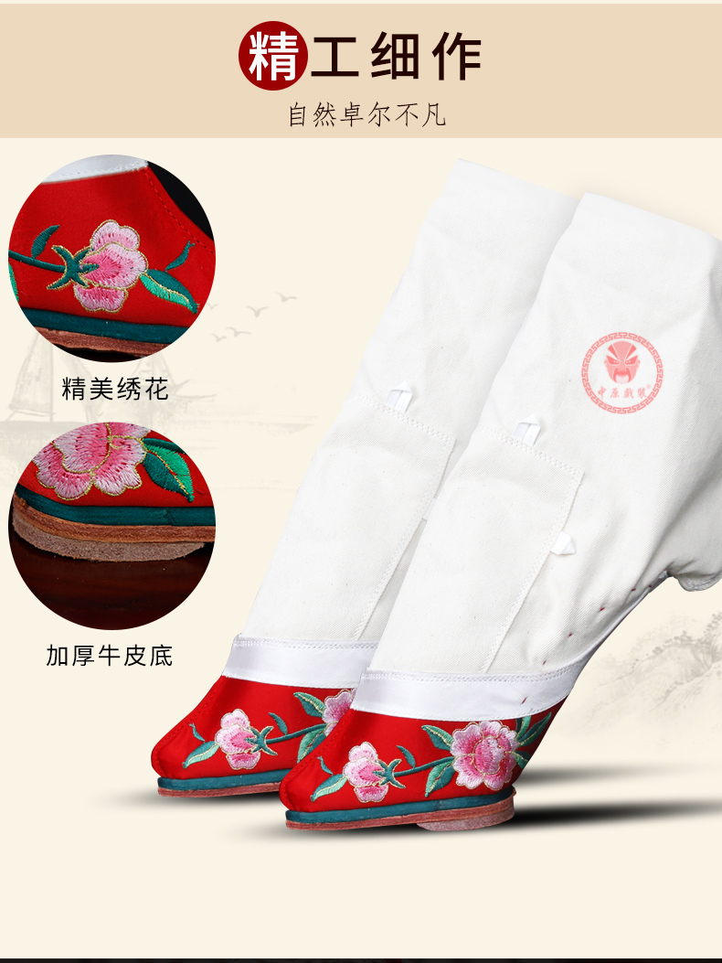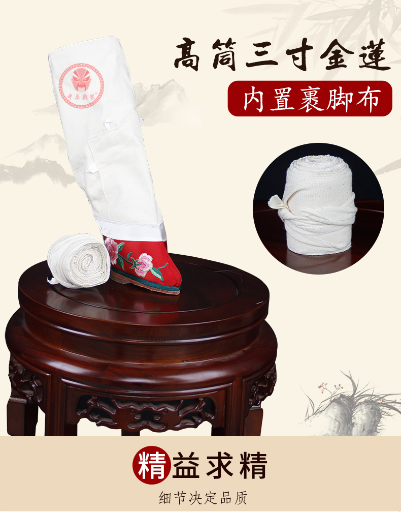 商品名称:中原戏装戏曲软跷功鞋三寸金莲鞋北京专业跷鞋京剧花旦角绑小脚鞋