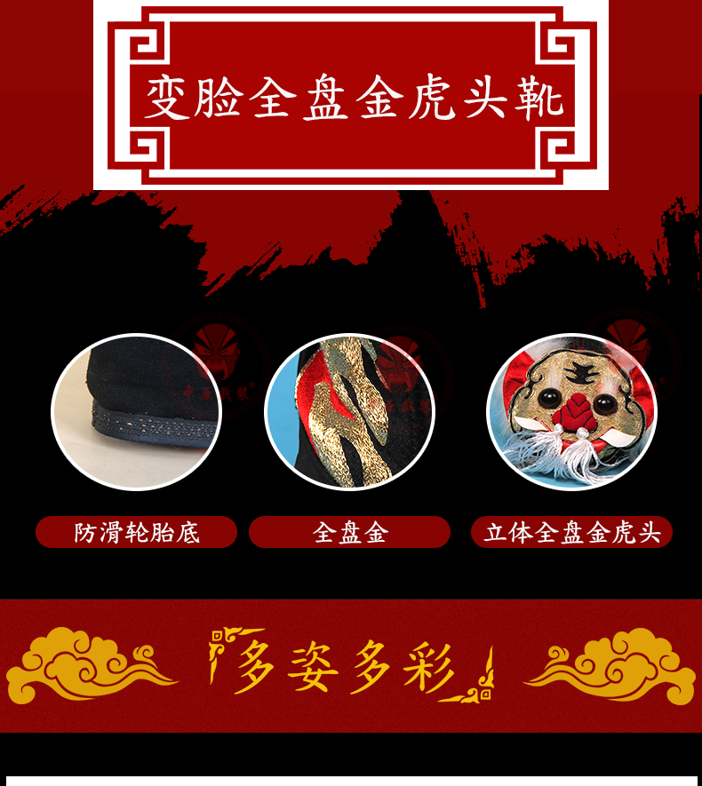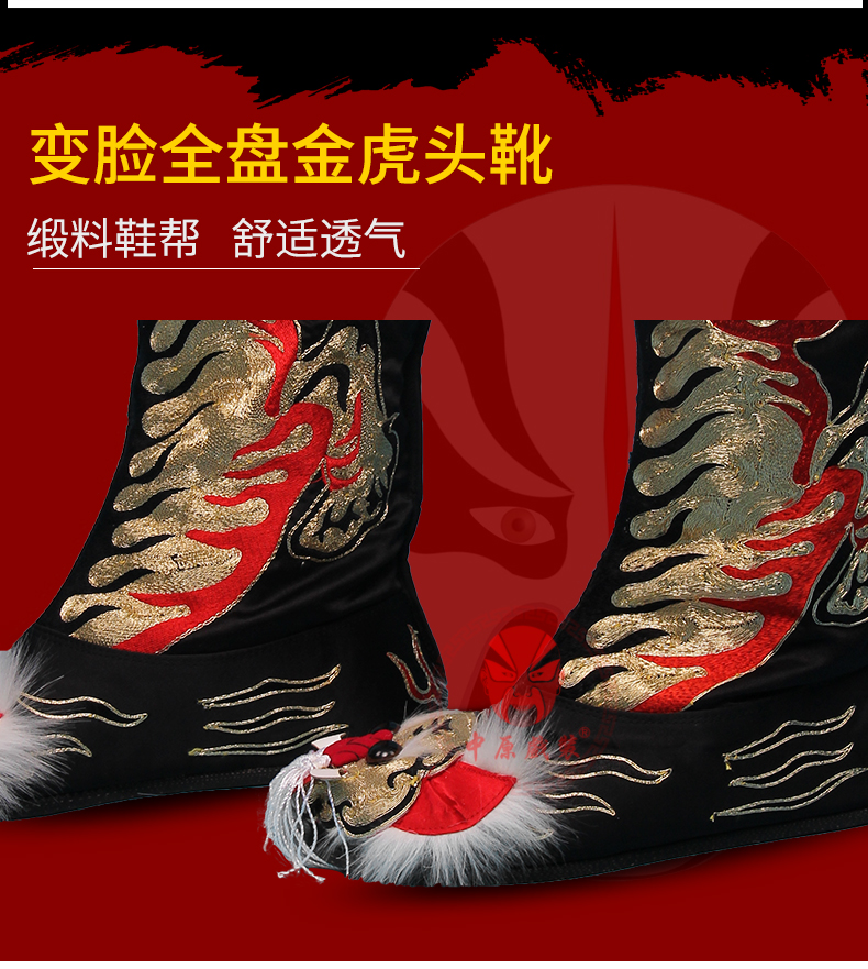 商品名称:中原戏装川剧变脸盘金虎头靴虎头鞋子戏曲戏剧舞台表演变脸专用鞋