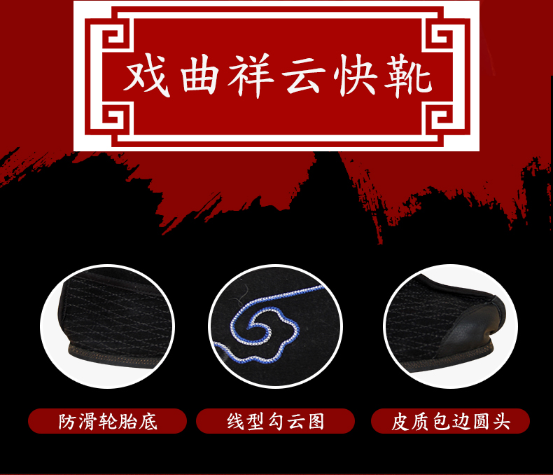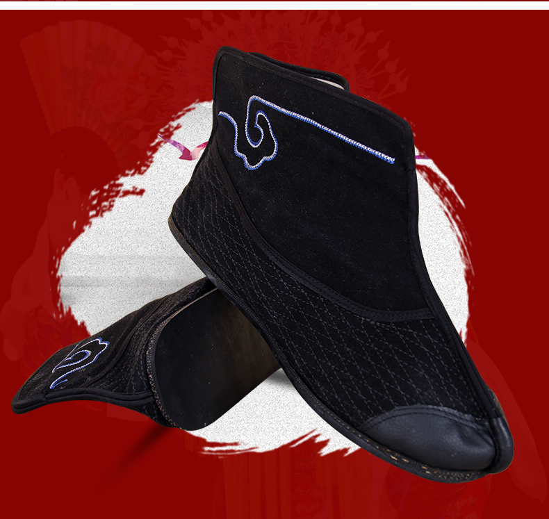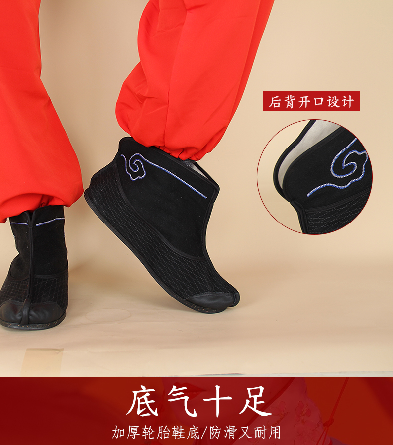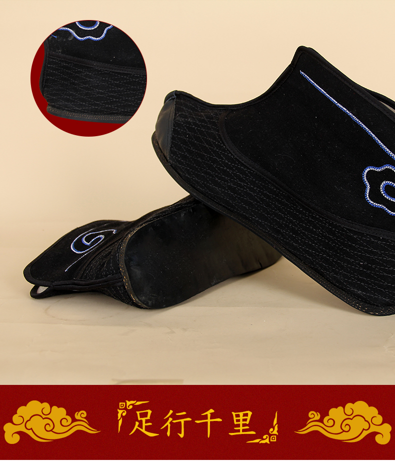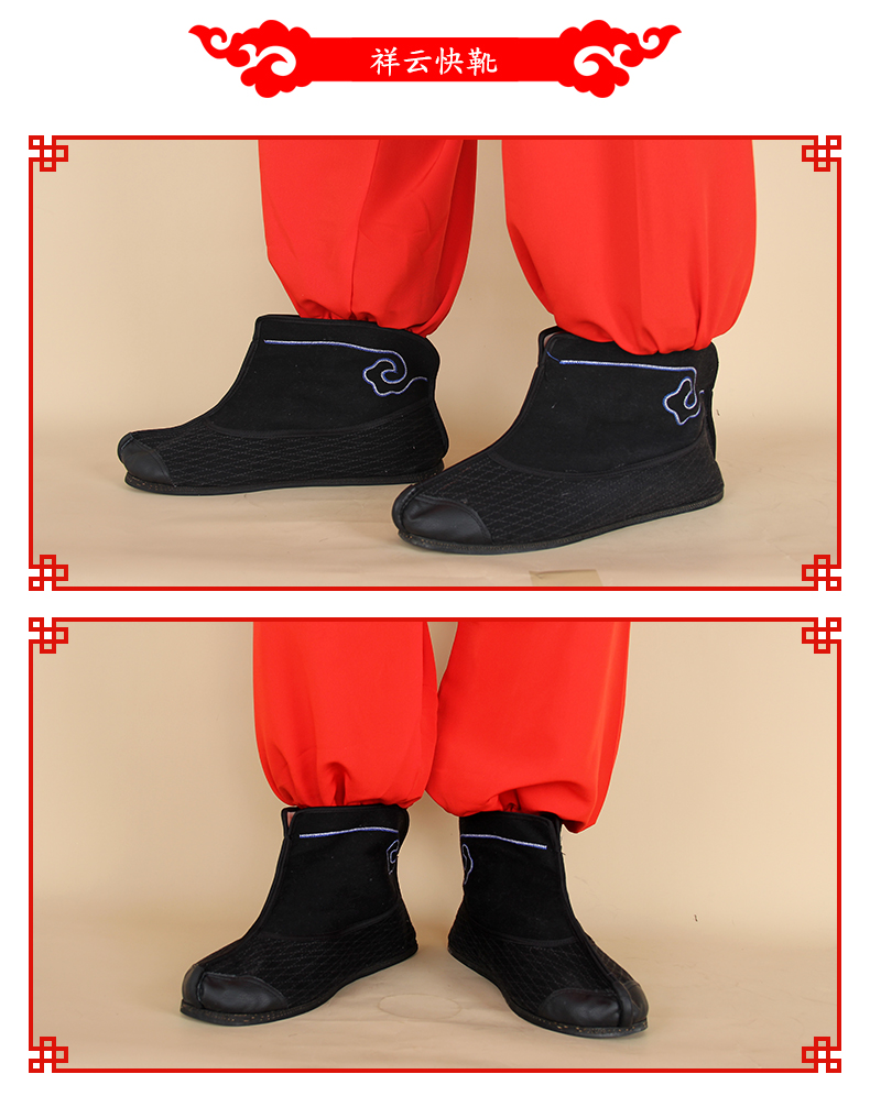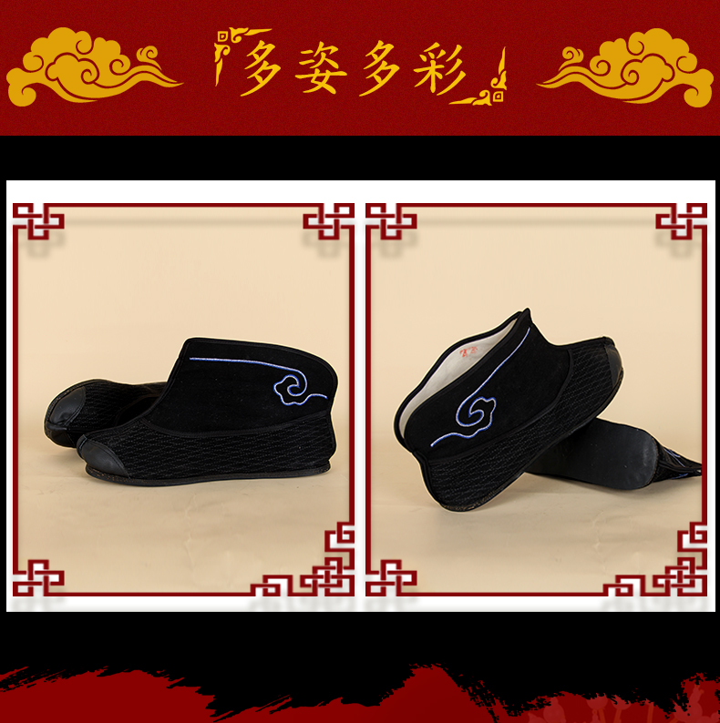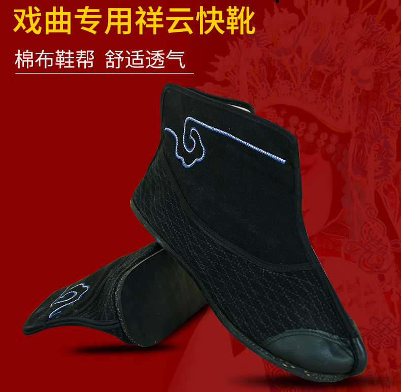商品名称:中原戏装祥云轮胎底快靴打靴兵靴练功鞋戏曲专用鞋戏剧舞台演出