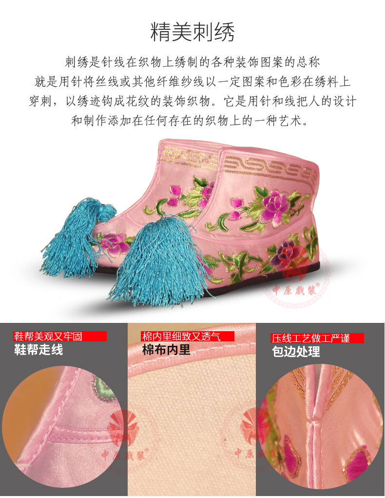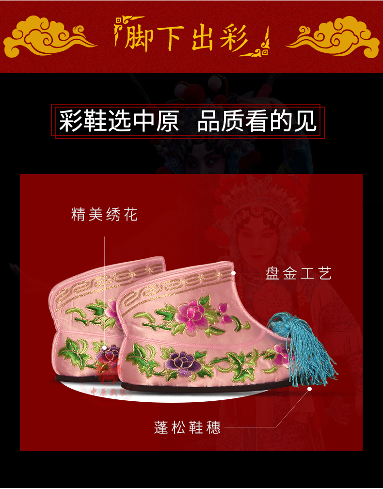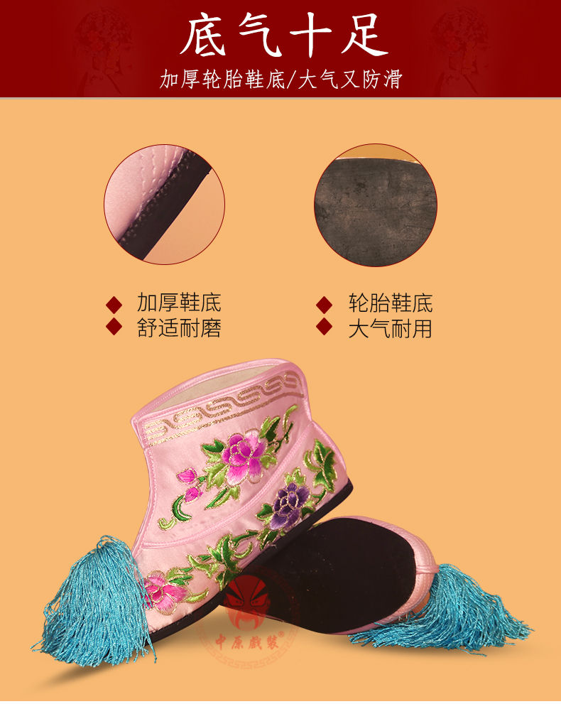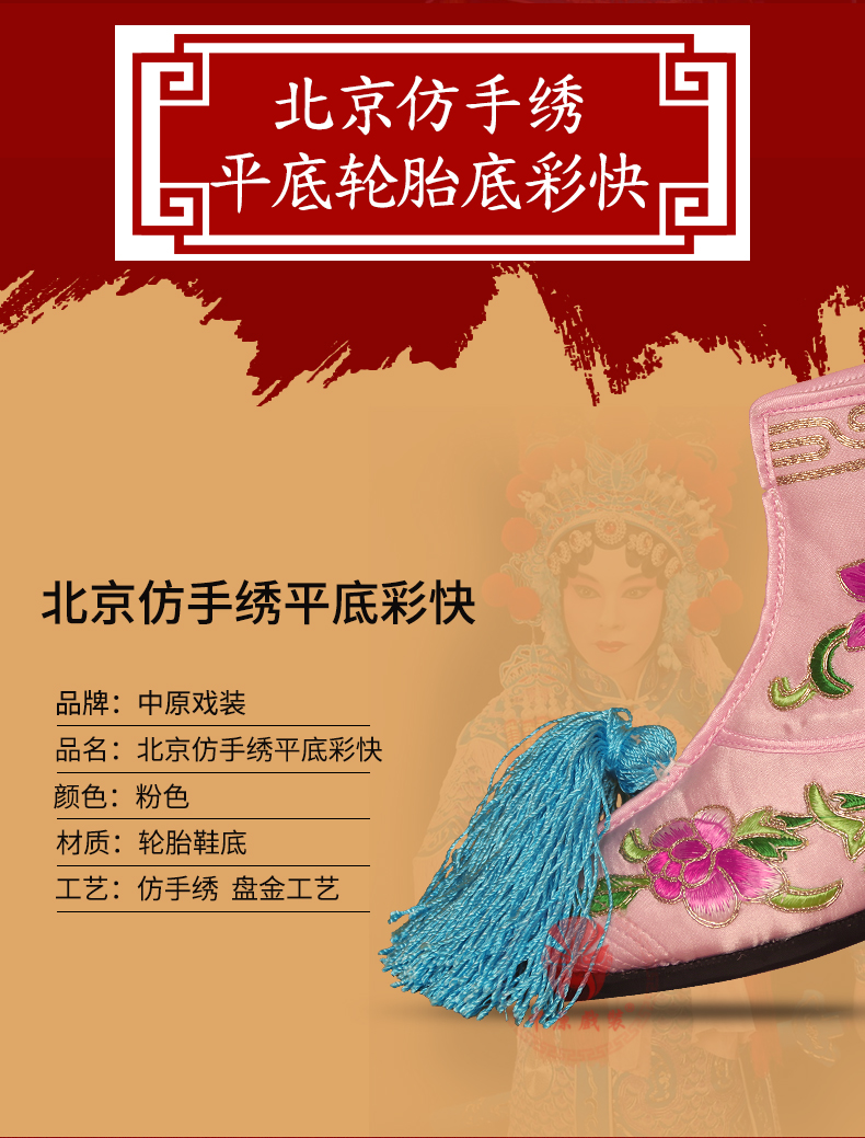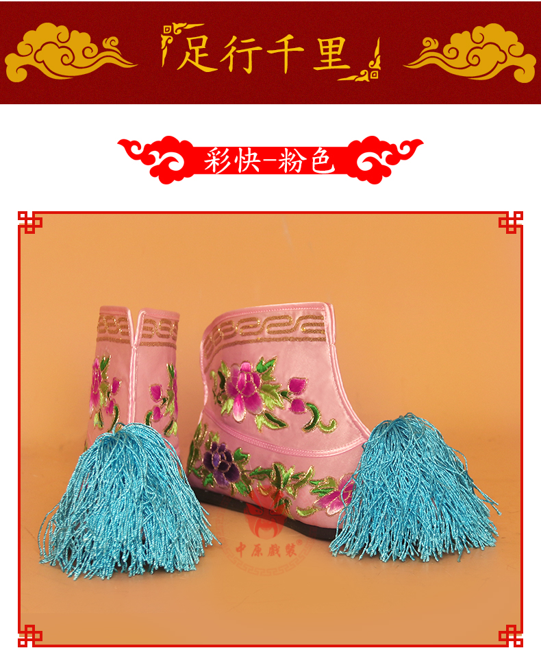 商品名称:中原戏装京剧戏剧戏曲鞋靴女北京女彩快轮胎底仿手绣武旦靴子打鞋