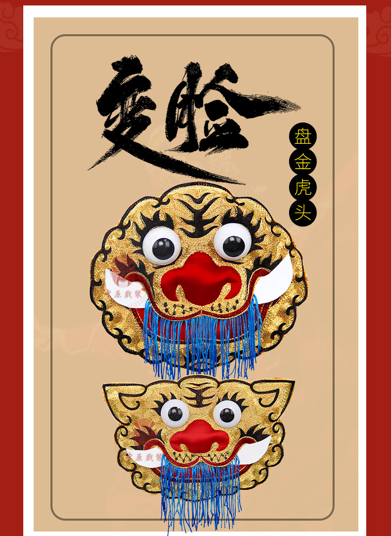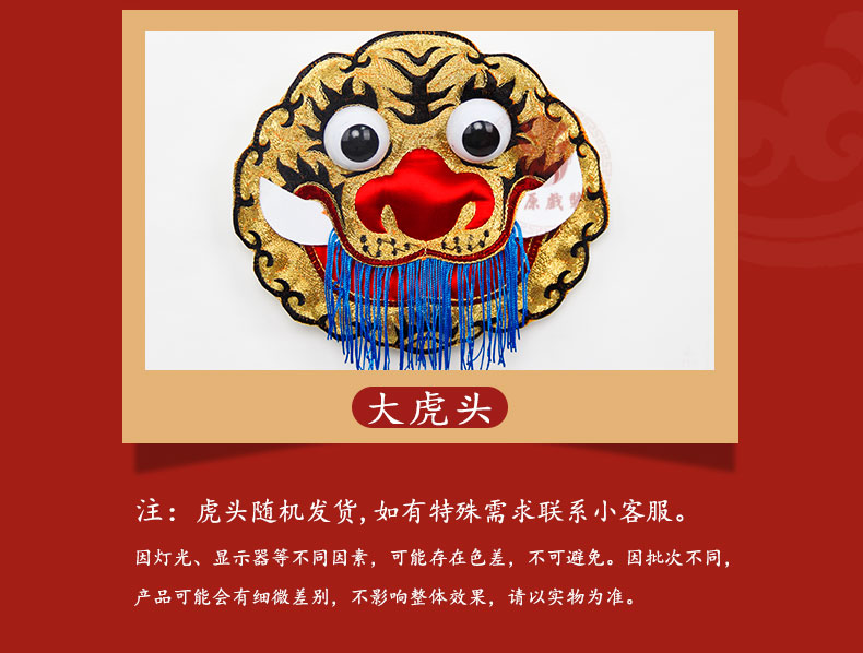 商品名称:中原戏装川剧变脸服装配件盘金大小虎头腰间虎头戏曲戏剧武生武将