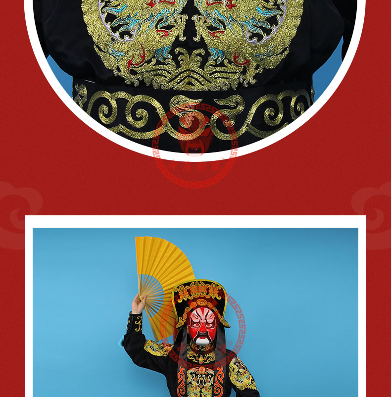 商品名称:中原戏装盘金变脸服全套川剧变脸服装专用新款二双龙戏珠变脸服