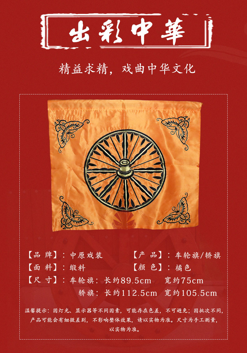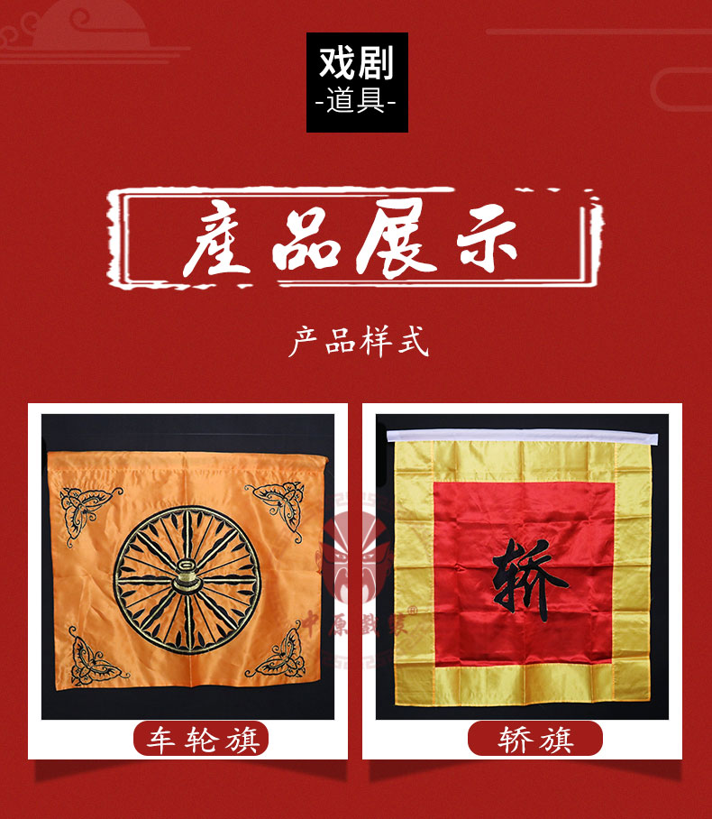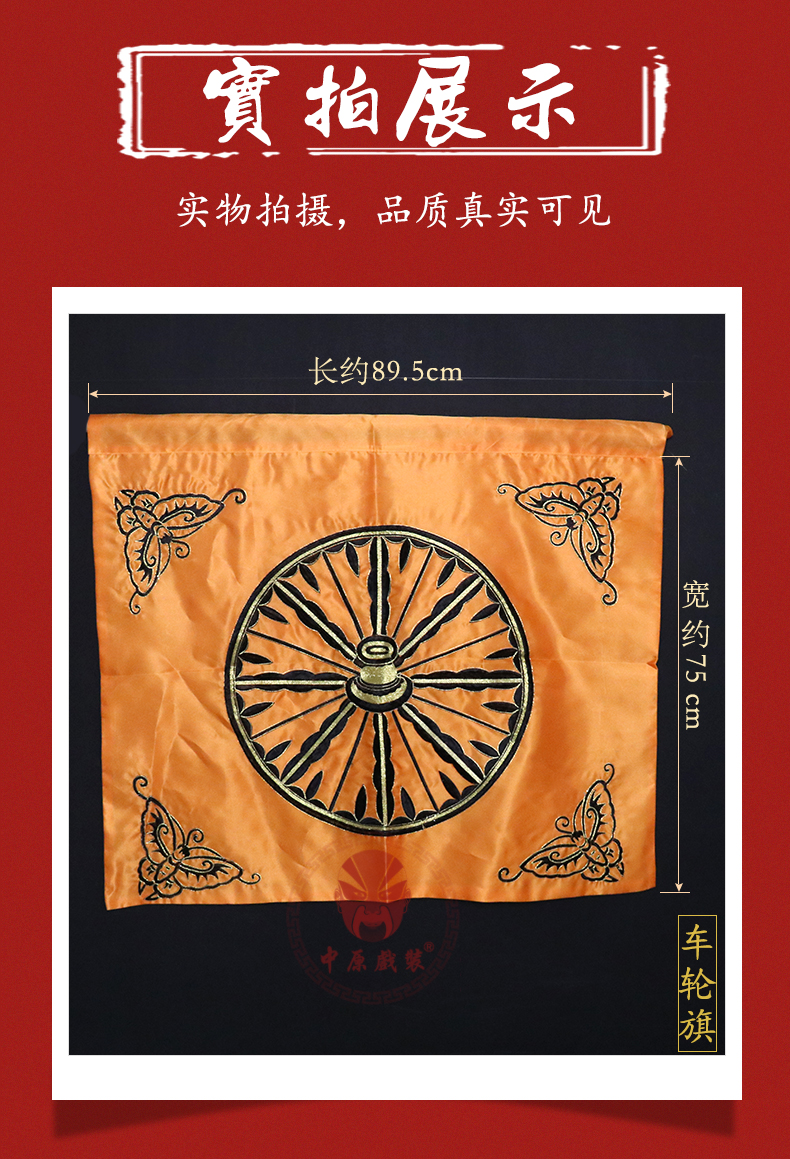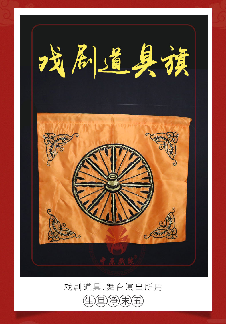 商品名称:中原戏装车轮旗轿旗京剧豫剧戏剧舞台演出服装道具用品缎料车旗