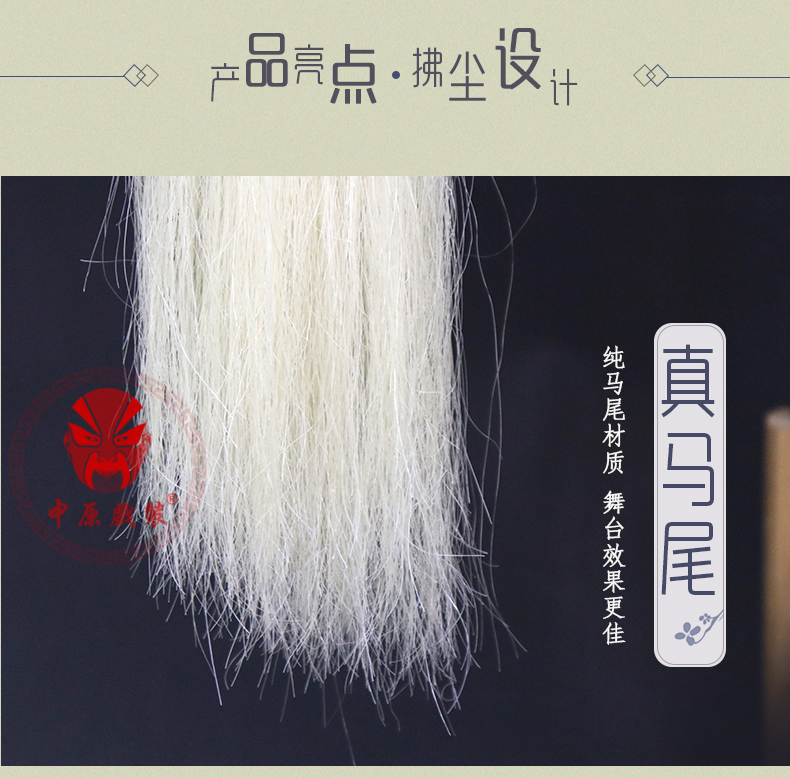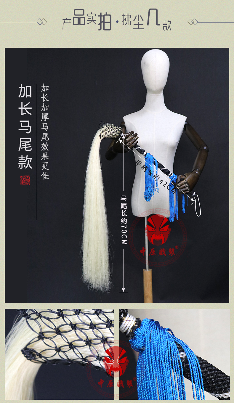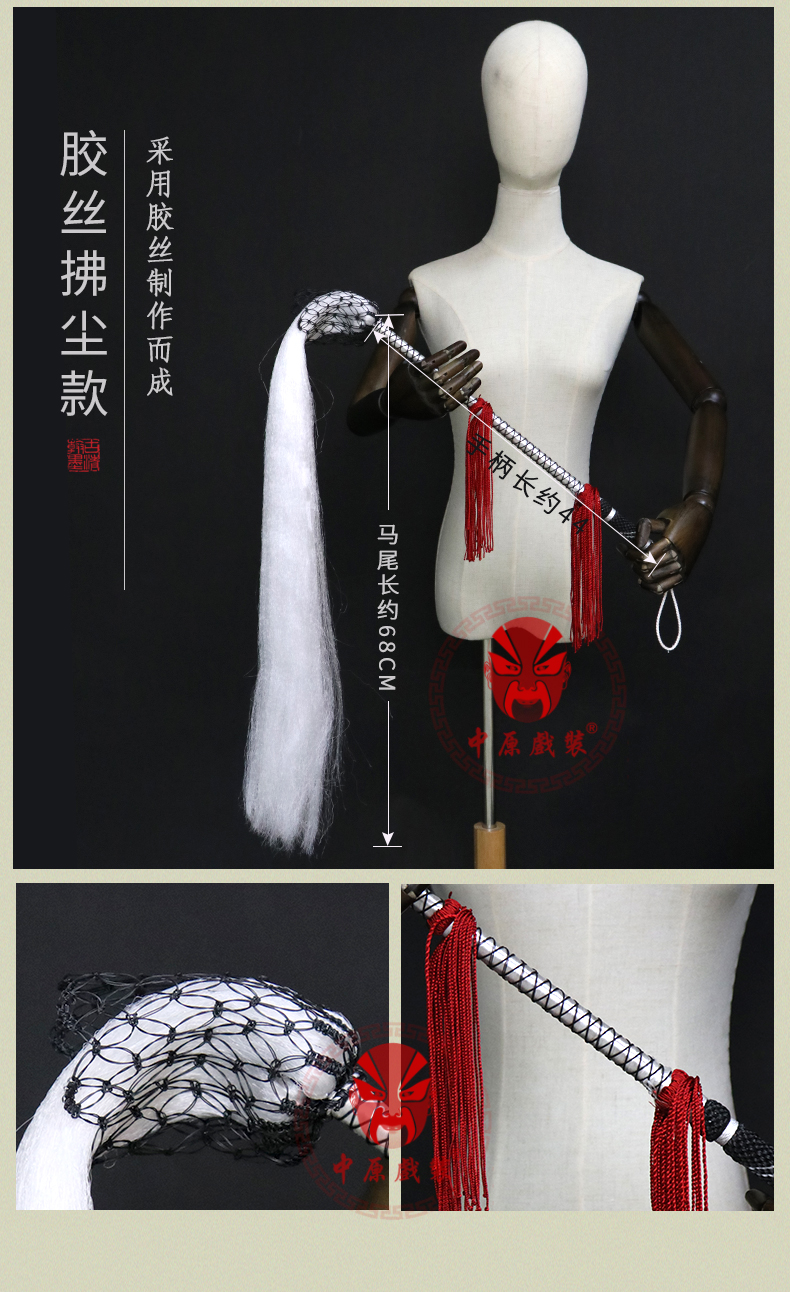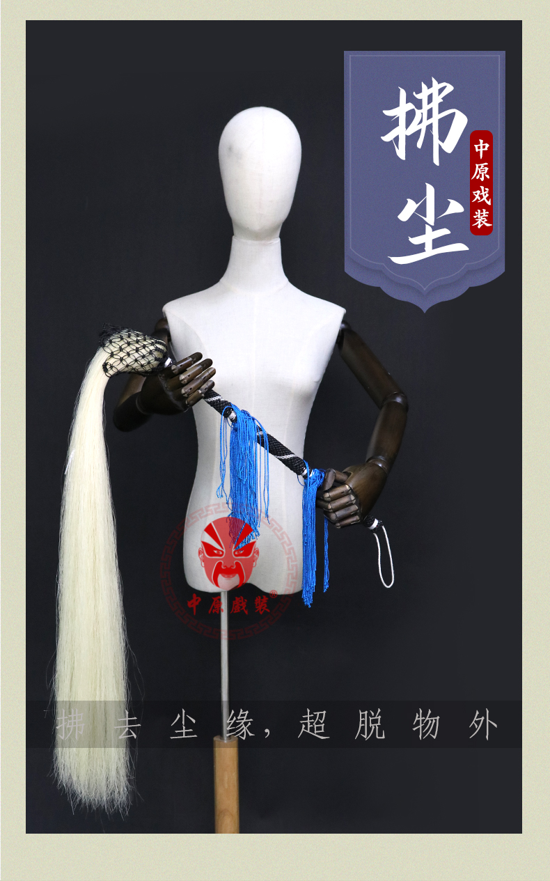 商品名称:中原戏装戏曲戏剧太极佛尘甩子马尾拂尘演出用胶丝拂尘戏曲拂尘