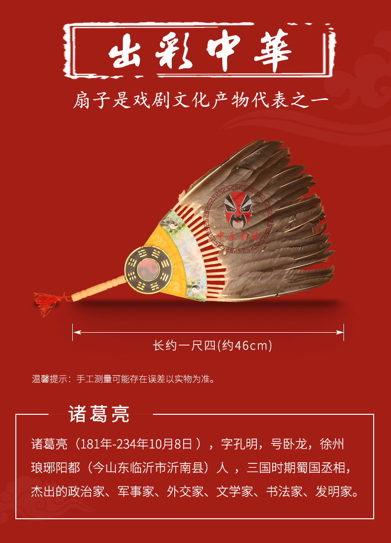 商品名称:中原戏装戏曲戏剧道具用品诸葛亮八卦扇羽毛扇礼品扇工艺扇孔明扇