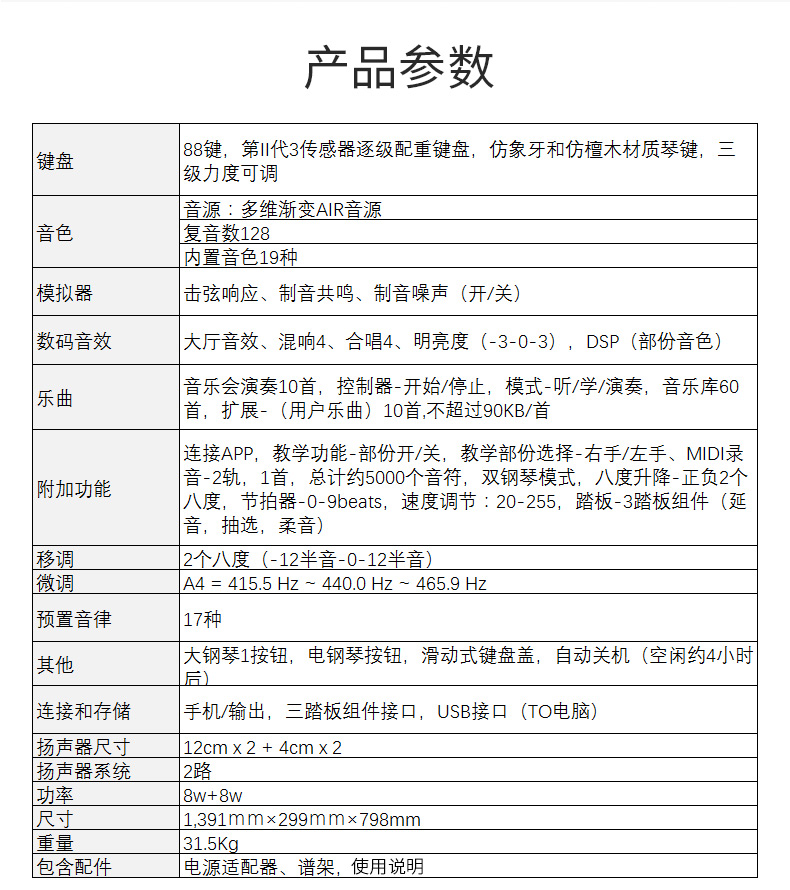 键盘数:88键