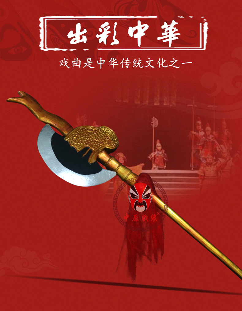 商品名称:中原戏装戏曲戏剧京剧武生武旦兵器长柄斧开山斧大板斧单双斧兵器