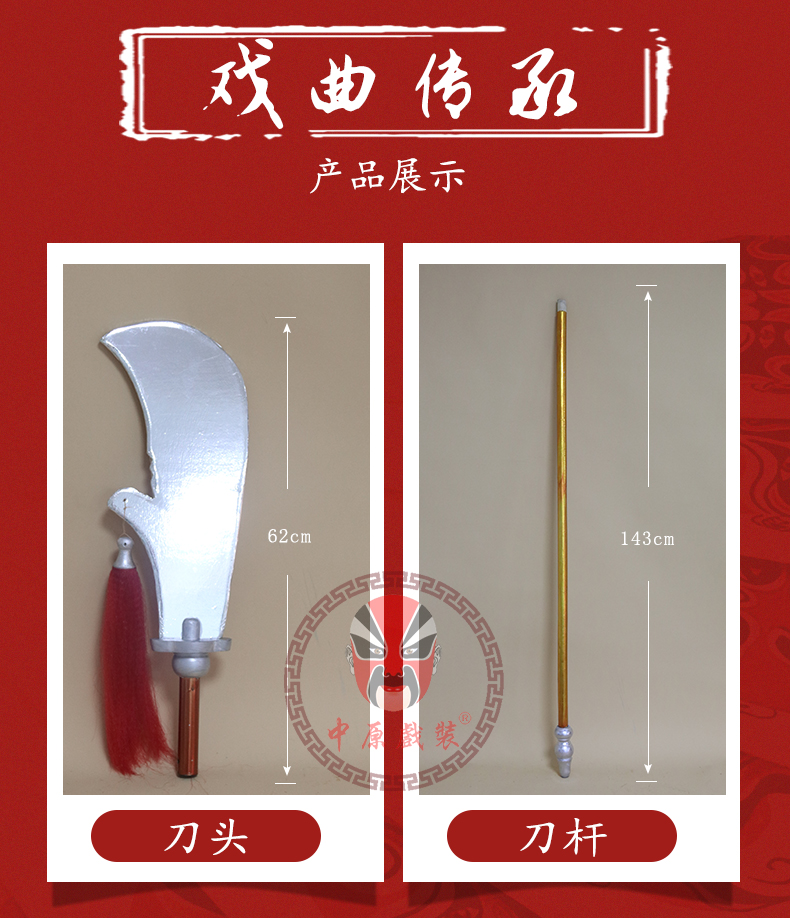 商品名称:中原戏装戏曲兵器木质一环大刀戏剧道具武术京剧武生将军兵器大刀