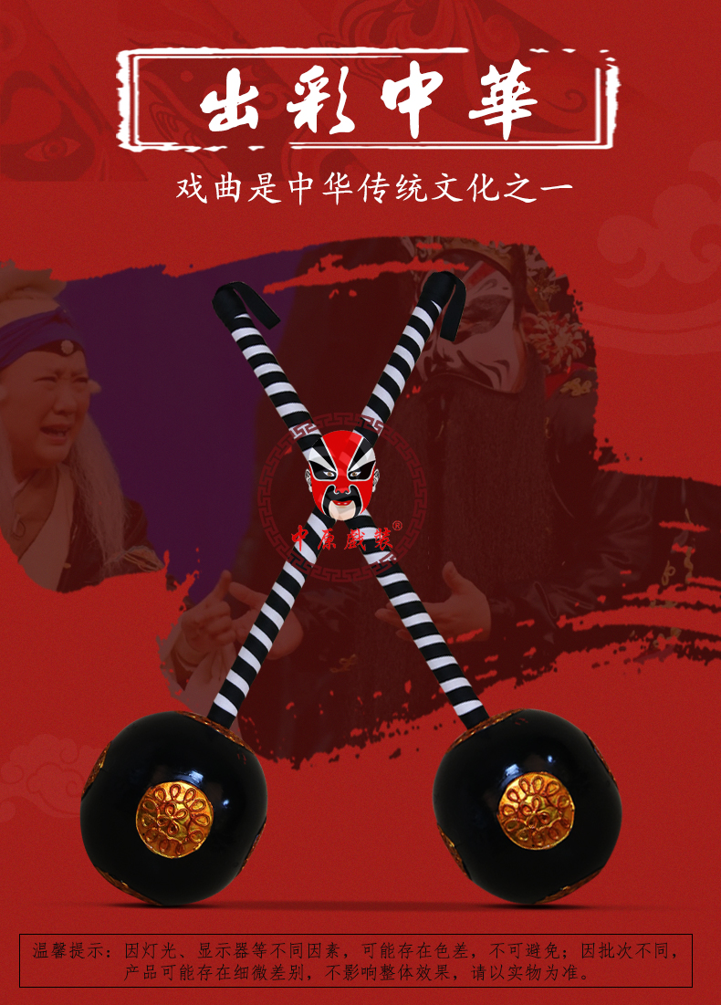 商品名称:中原戏装戏曲黑圆锤舞台道具十八般兵器古装影视武生金锤银锤木锤
