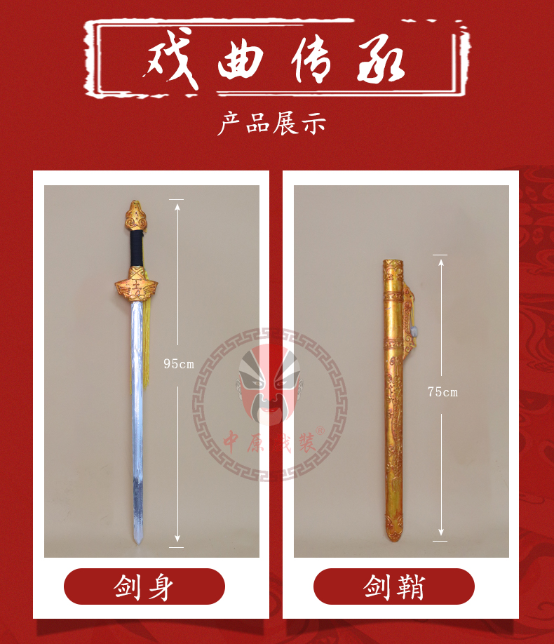 商品名称:中原戏装戏曲尚方宝剑戏剧道具京剧宝剑仿真道具木制金剑天子剑
