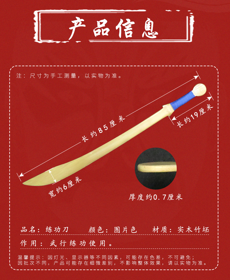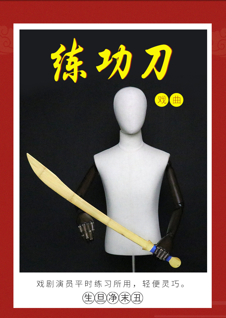 商品名称:中原戏装戏曲练功刀丕男女刀批出手刀戏校武生武旦小兵竹木制单刀