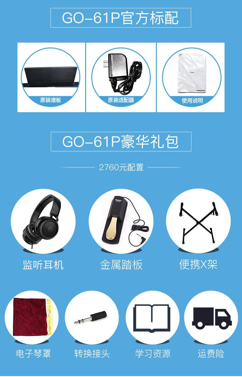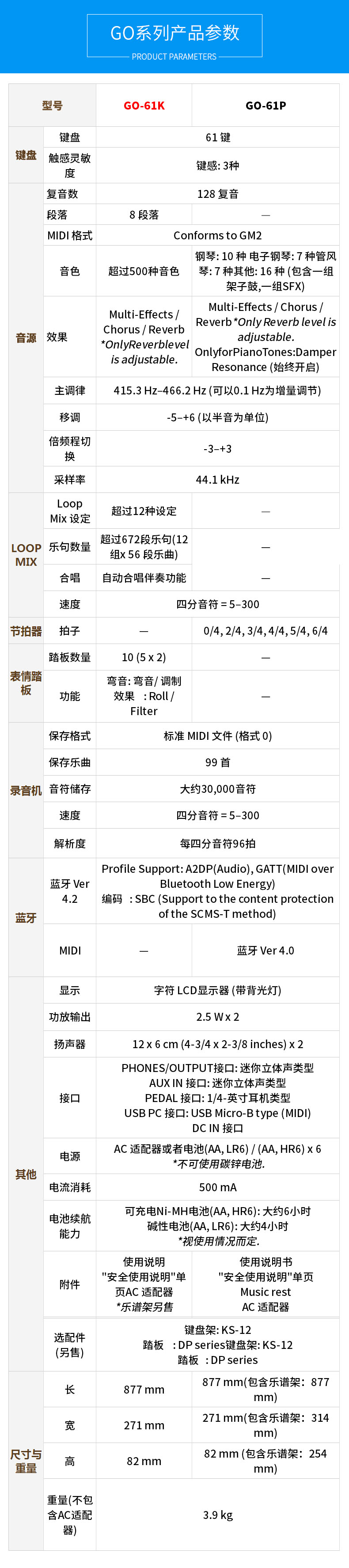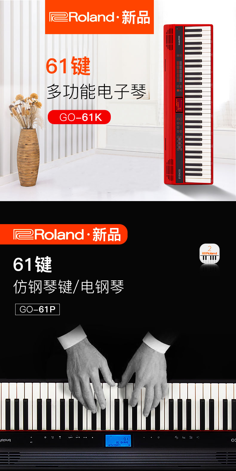 商品名称:Roland 罗兰电子琴GO61K 新品GO61P仿钢琴键非重锤电子钢琴61键电钢琴