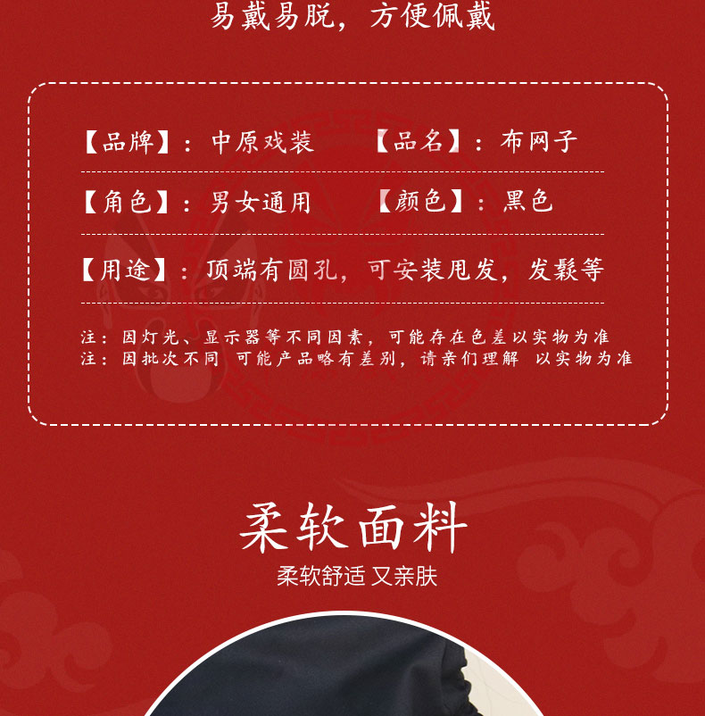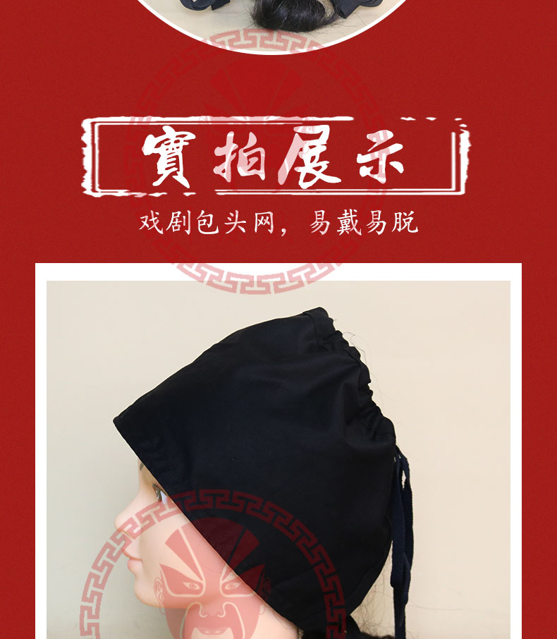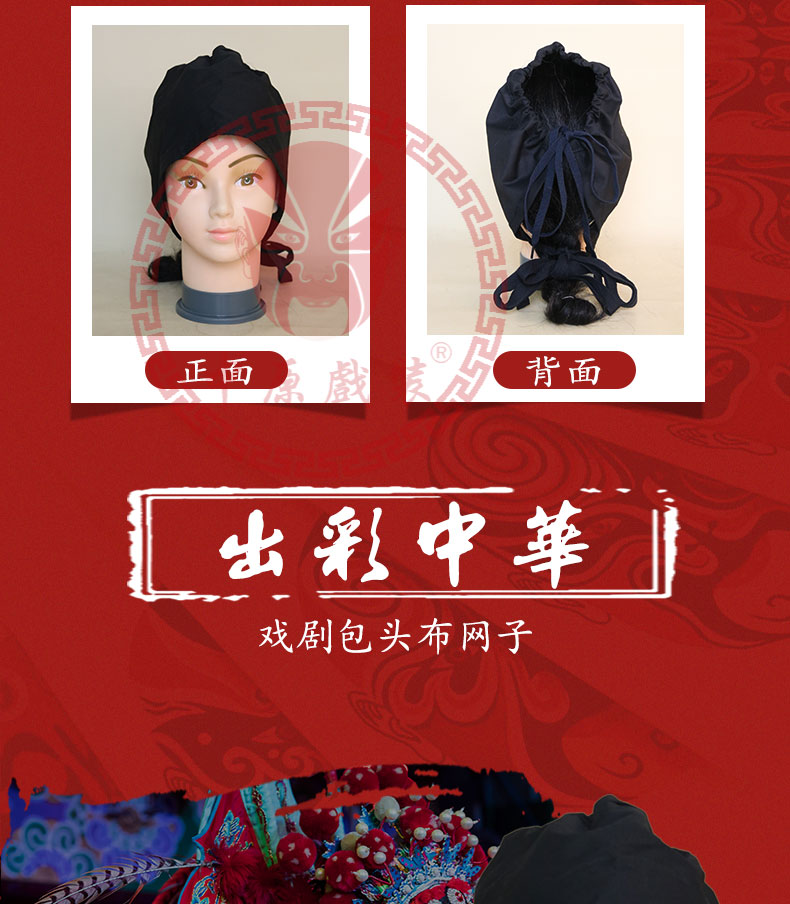 商品名称:中原戏装戏曲包头布网子发网戏剧包头用品京剧头网罩巾纯棉布网子