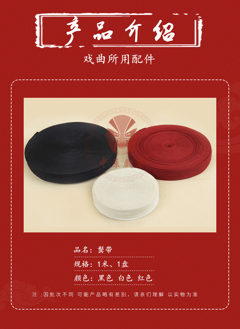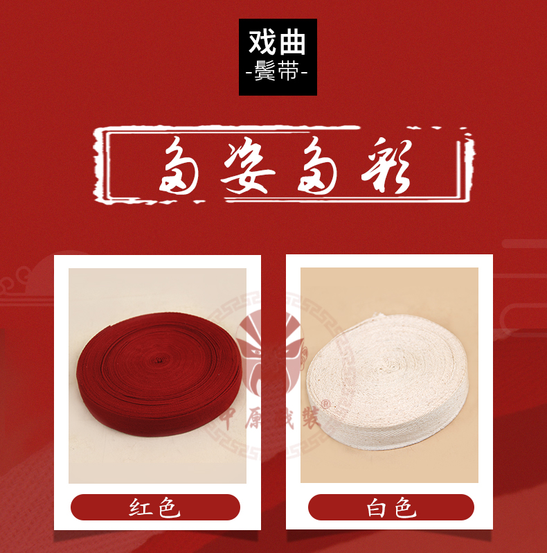 商品名称:中原戏装戏曲鬓带吊眉带纯棉勒头绳绑头带帽带缠枪带戏剧用品绑带