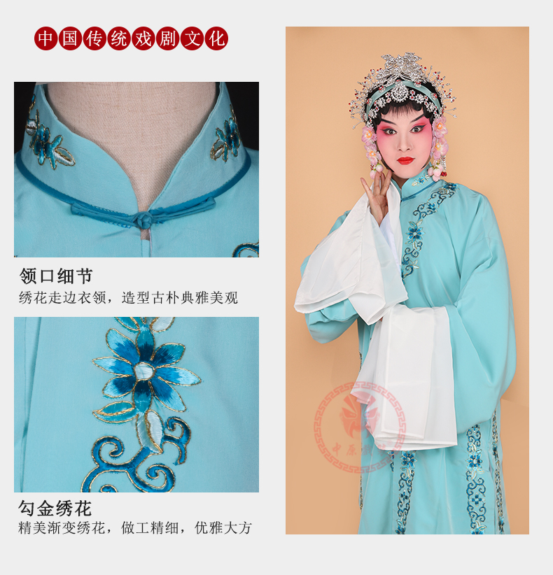 商品名称:中原戏装京剧豫剧戏曲服装女装花旦青衣戏服好绉勾金花边青衣披