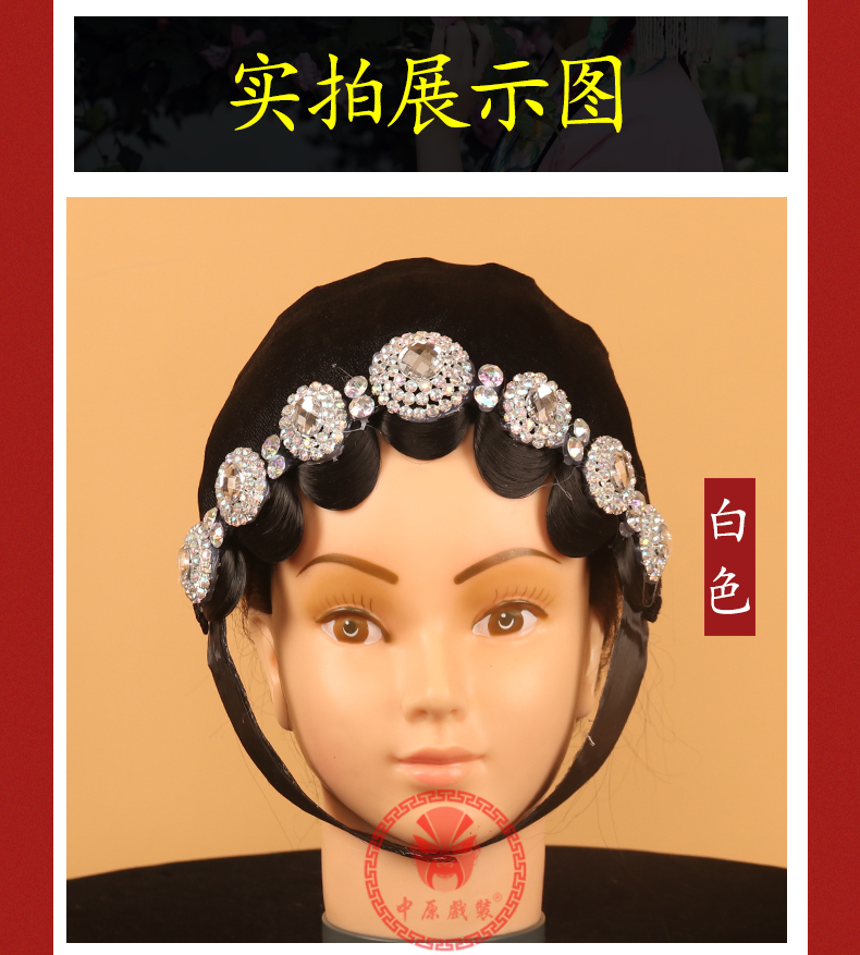 商品名称:中原戏装戏曲戏剧用品京剧头面木钻一体式头面小姐头套木钻包头