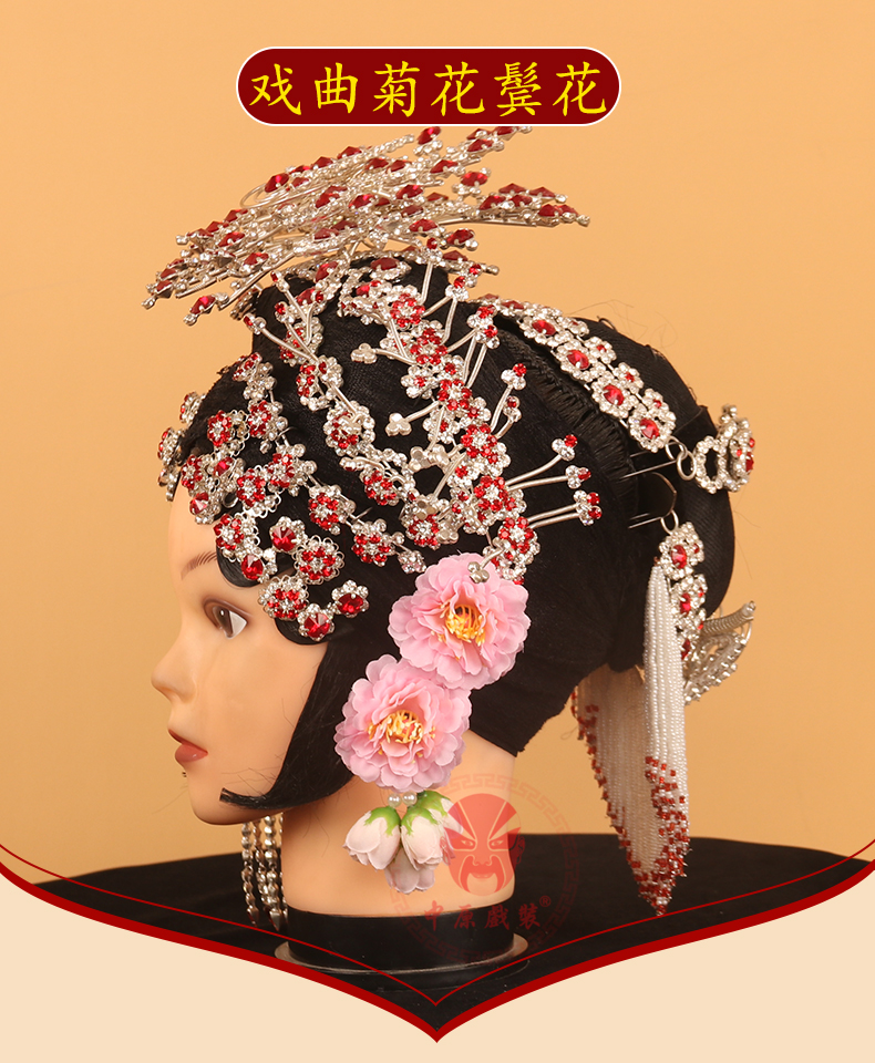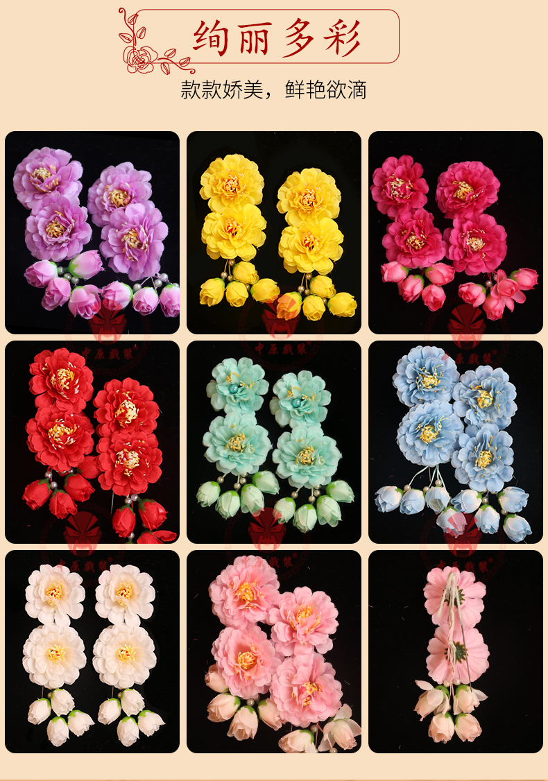 商品名称:中原戏装戏曲鬓花京剧耳边绢花戏剧小姐头饰青衣花旦新款菊花头花