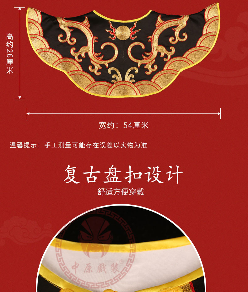商品名称:中原戏装川剧戏曲戏剧变脸服装配件舞台表演云肩盘金绣龙变脸翘肩
