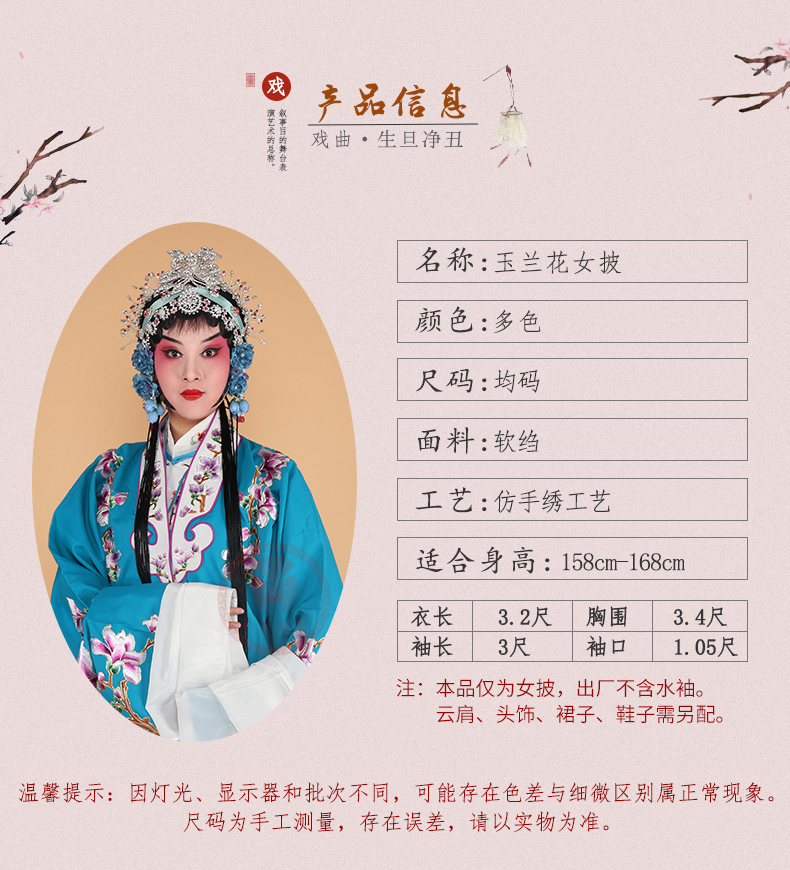 商品名称:中原戏装女披京剧戏曲戏剧舞台小姐青衣花旦服装软绉玉兰花女披