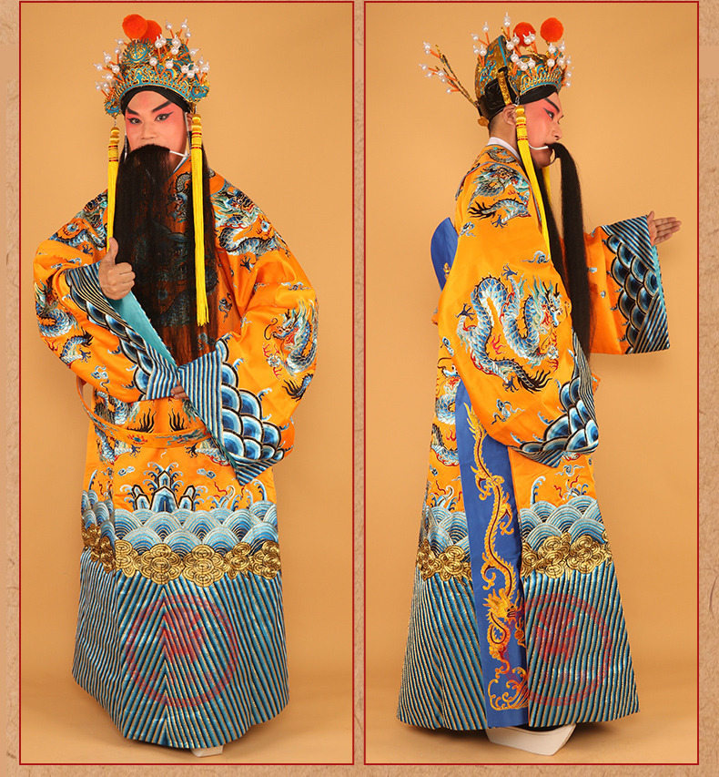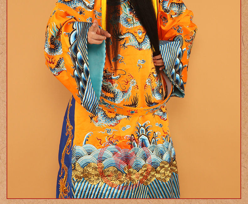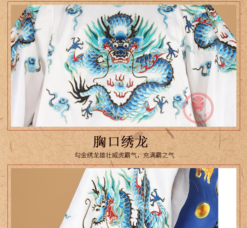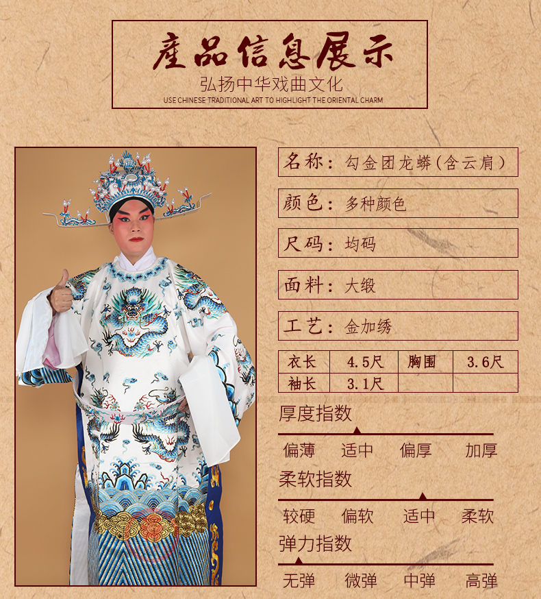 商品名称:中原戏装京剧戏剧演出服装戏曲男蟒袍皇帝王爷龙袍大缎勾金团龙蟒
