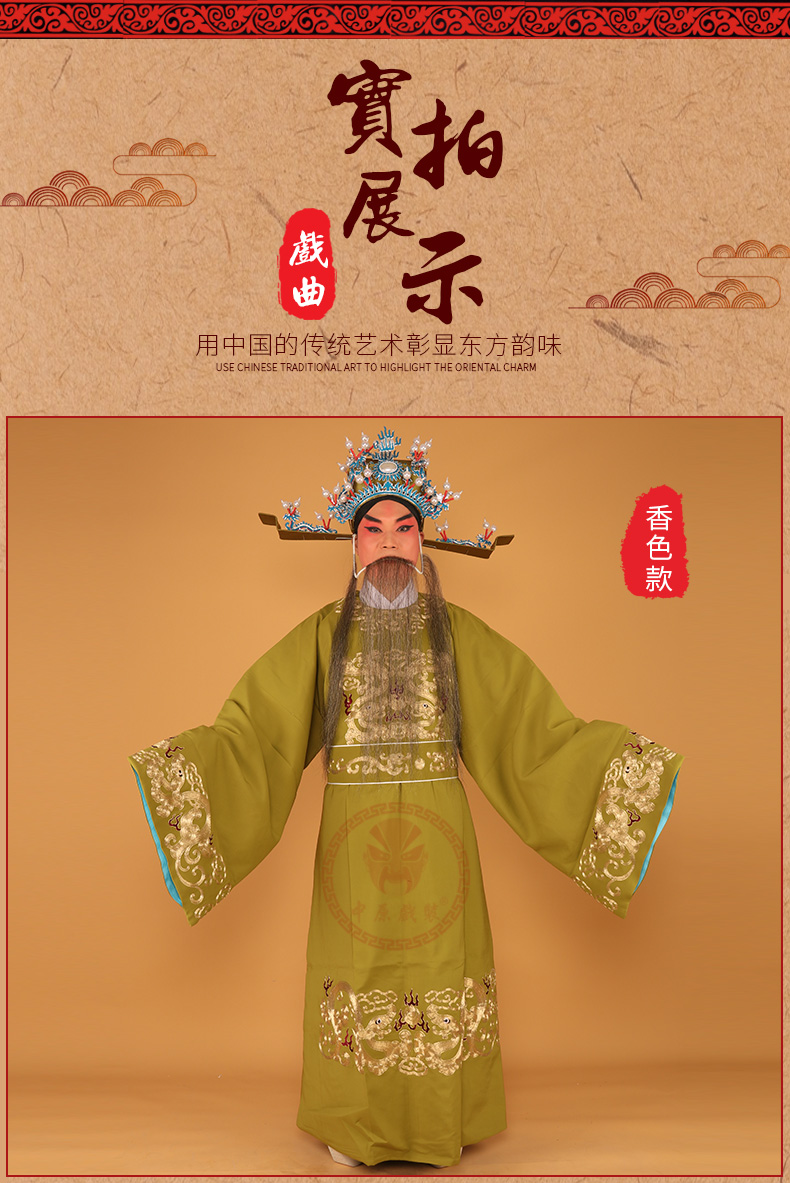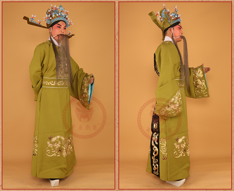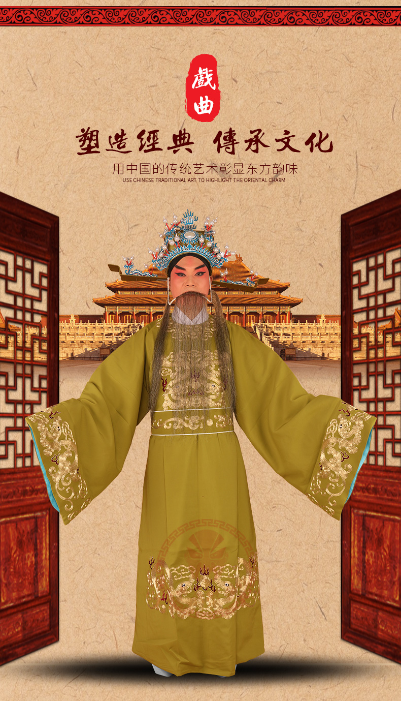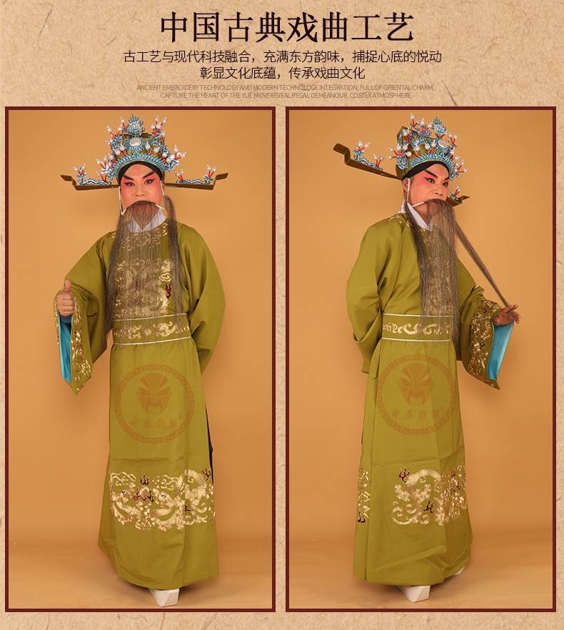 商品名称:中原戏装戏曲戏剧京剧官衣官服舞台演出服软绉全金团草龙改良官衣