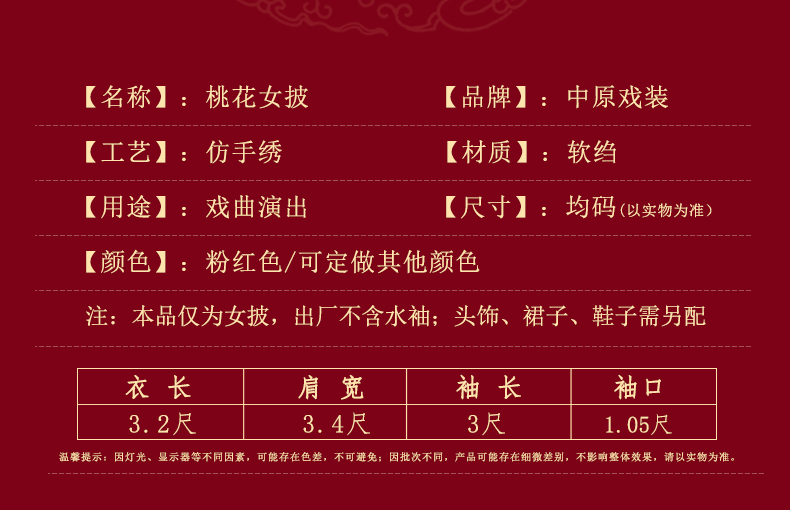 商品名称:中原戏装新款桃花女披戏曲服装舞台演出古装影视花旦青衣软绉女披