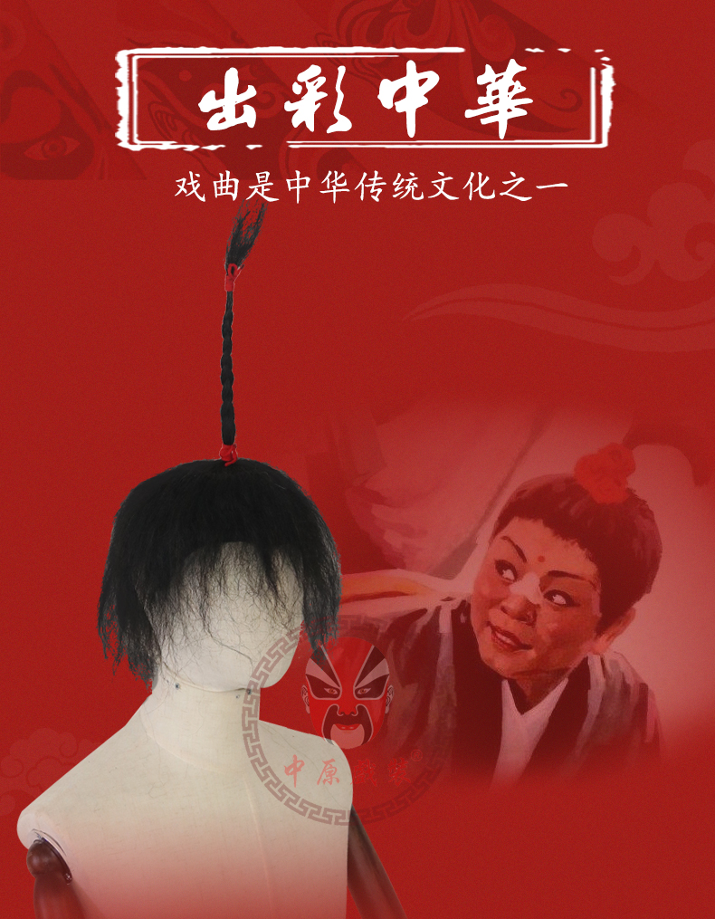 商品名称:中原戏装戏曲戏剧假发朝天辫小仓娃小辫子双簧辫子演出用品冲天辫