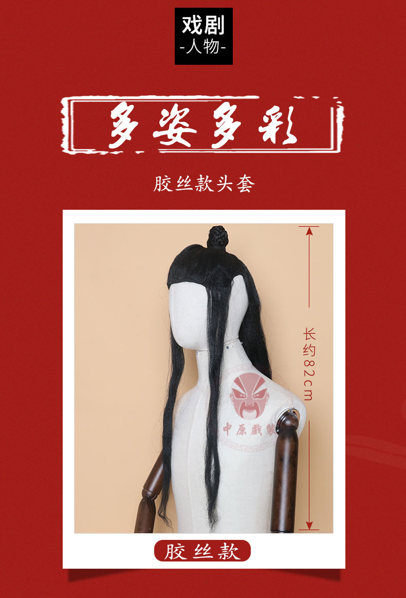 商品名称:中原戏装古装男假发戏剧戏曲道士头套老生头套影视舞台小生头套