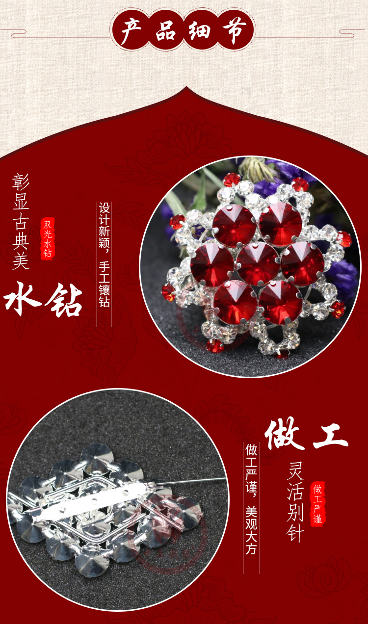 商品名称:中原戏装水钻领花戏曲戏剧花旦青衣小姐丫鬟化妆胸花胸针新款领扣