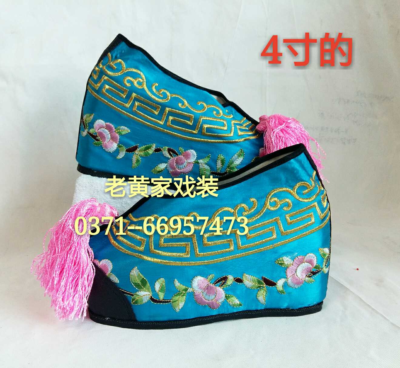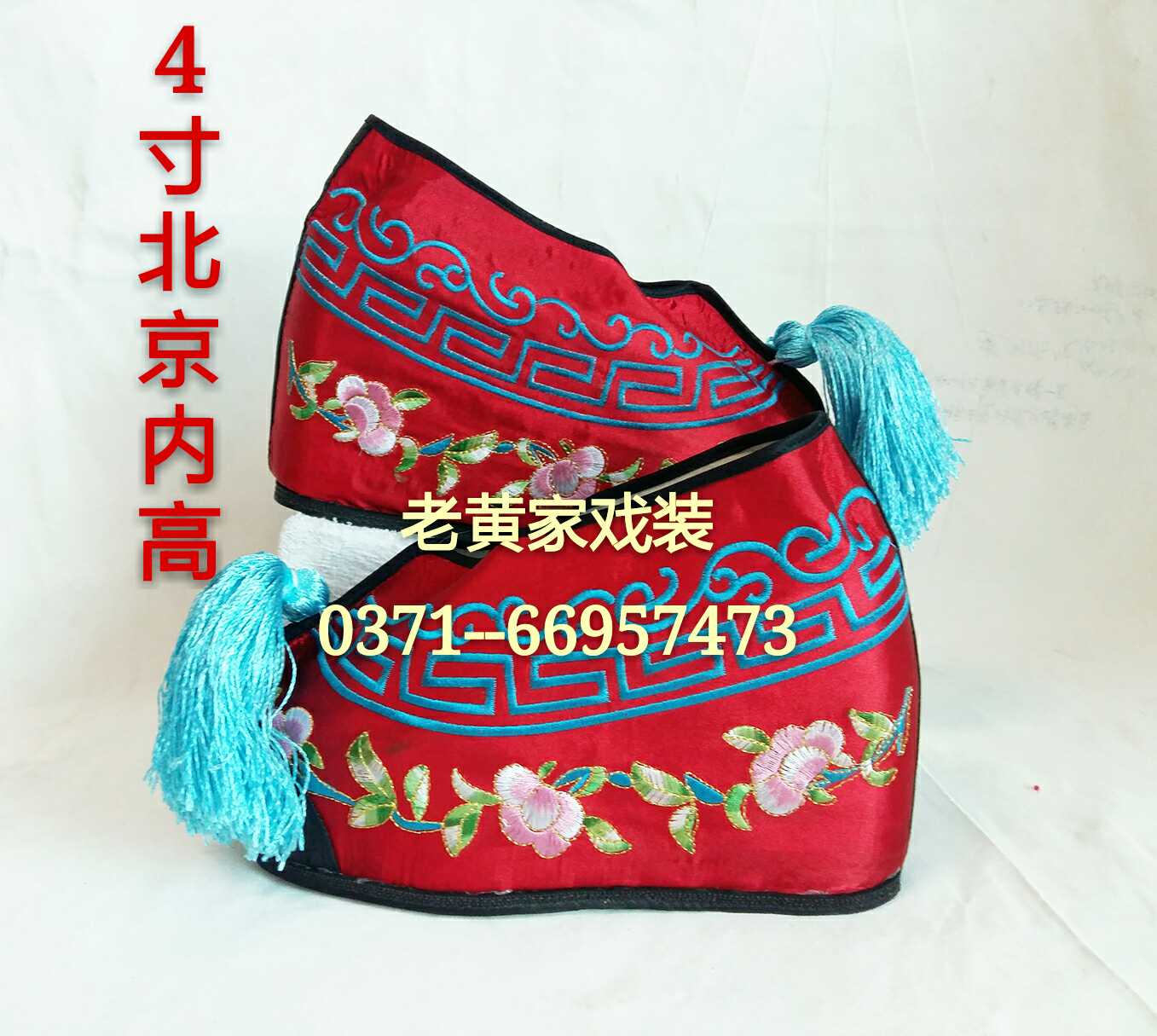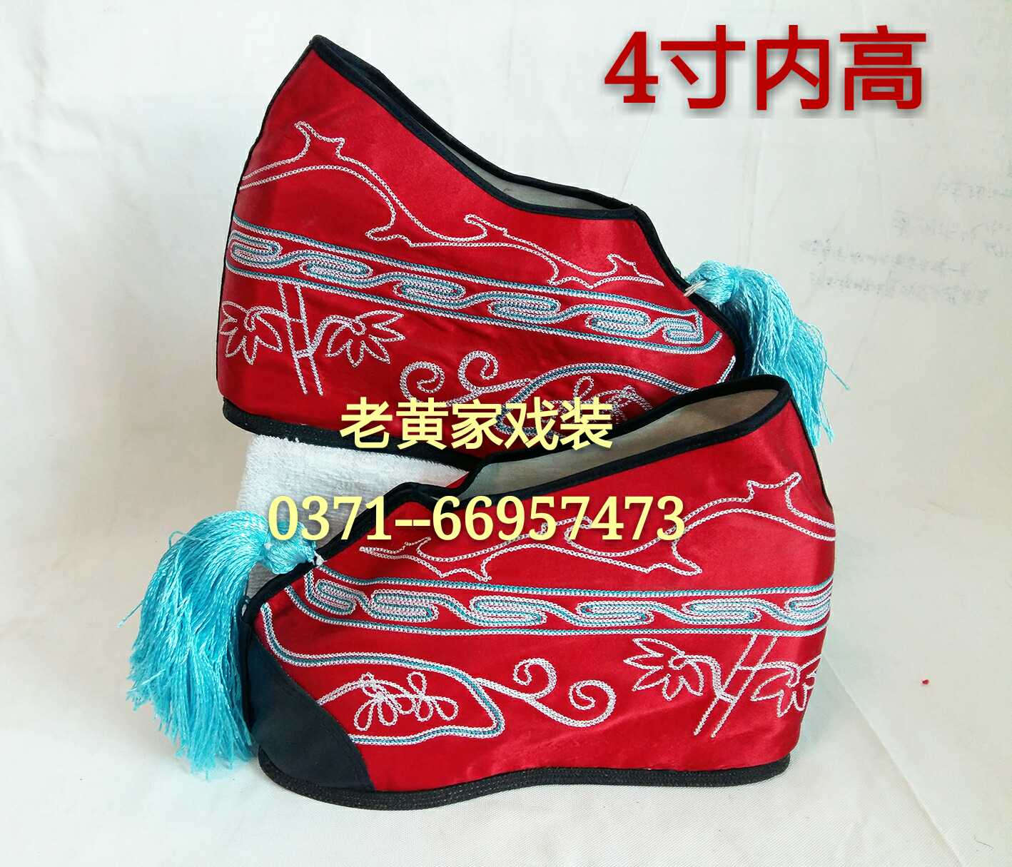商品名称:戏剧戏曲京剧花旦内高彩鞋正规北京真丝勾金内增高彩鞋四寸