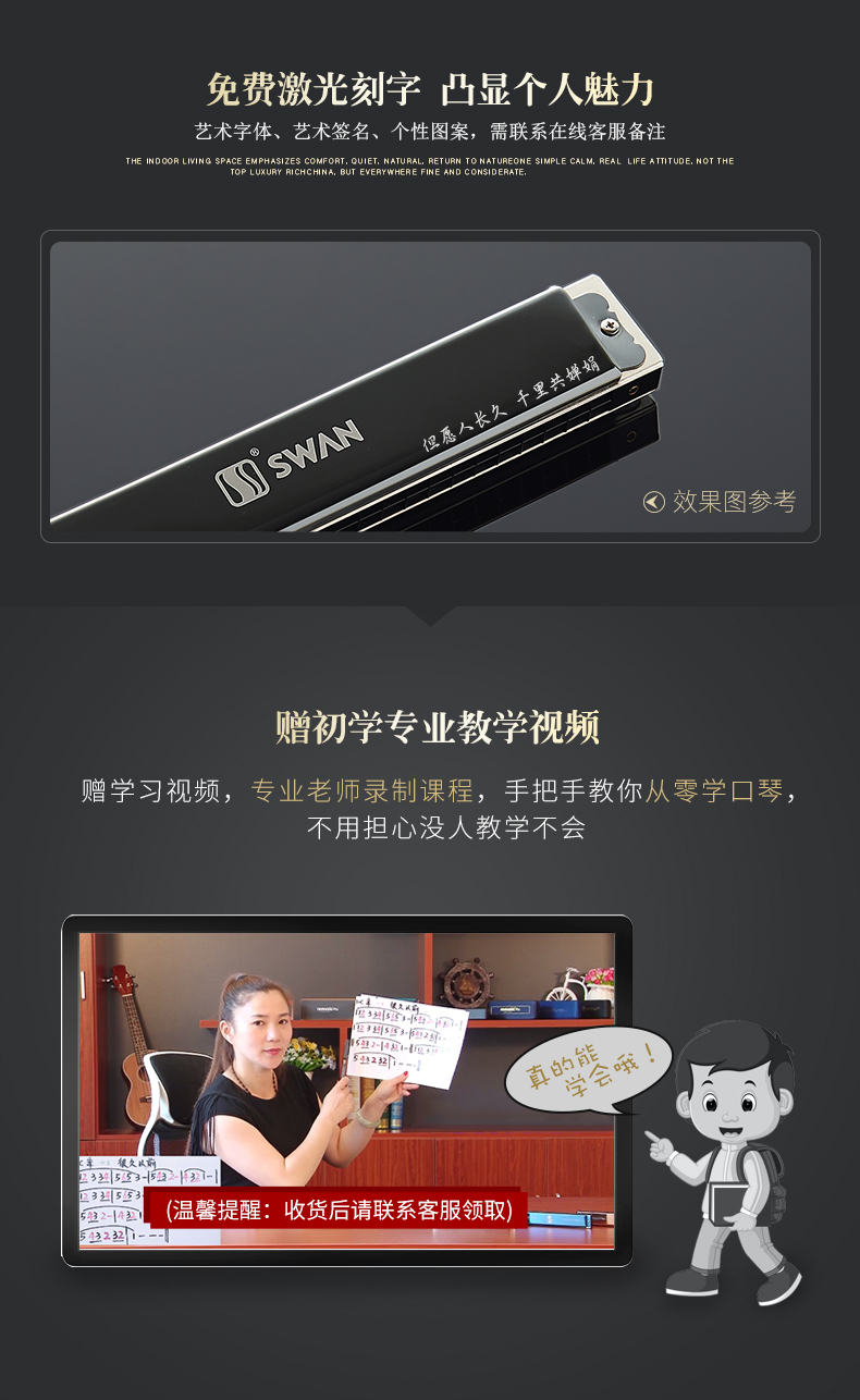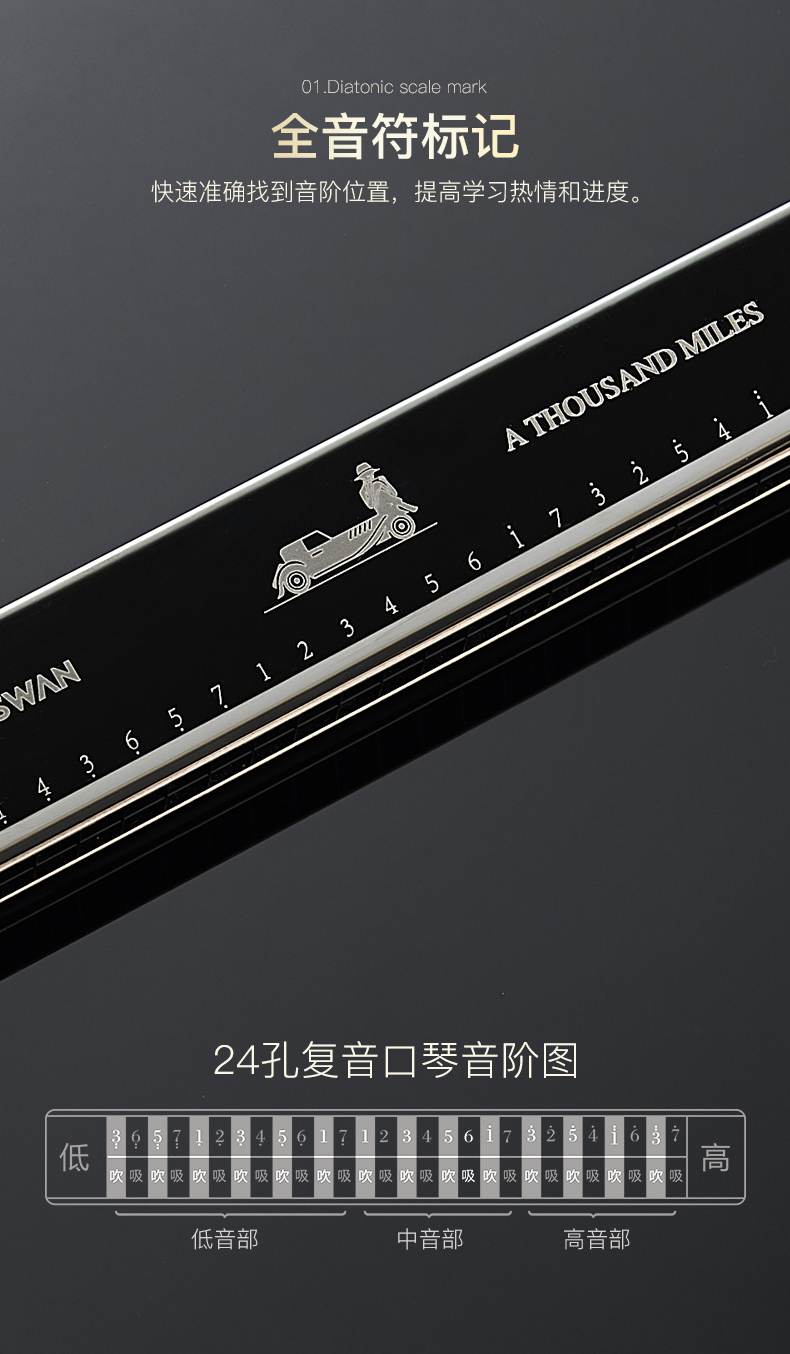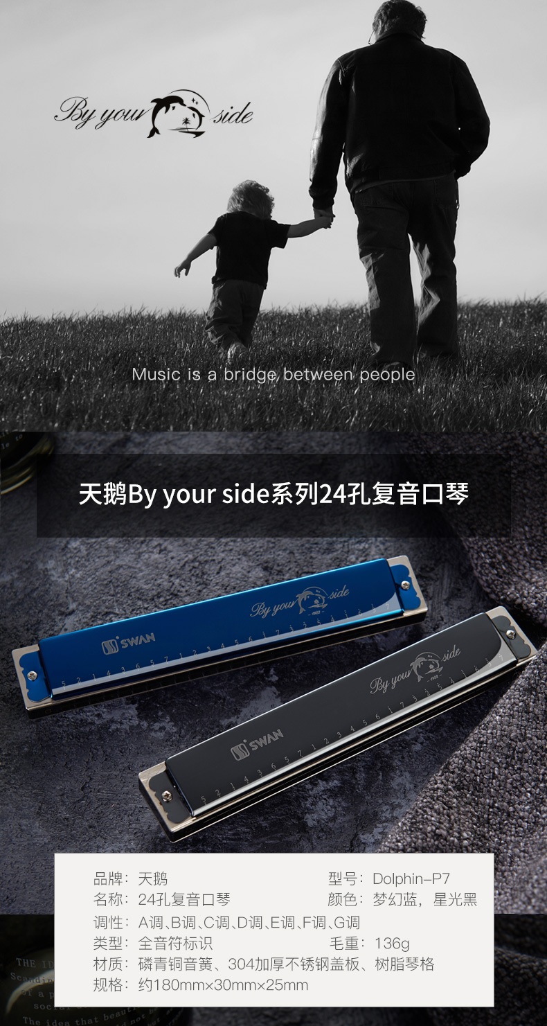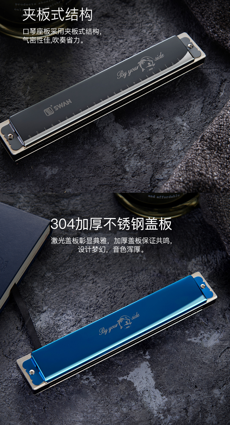 商品名称:天鹅24孔7调复音口琴专业演奏套装全套演奏初学ABCDEFG#7调套装