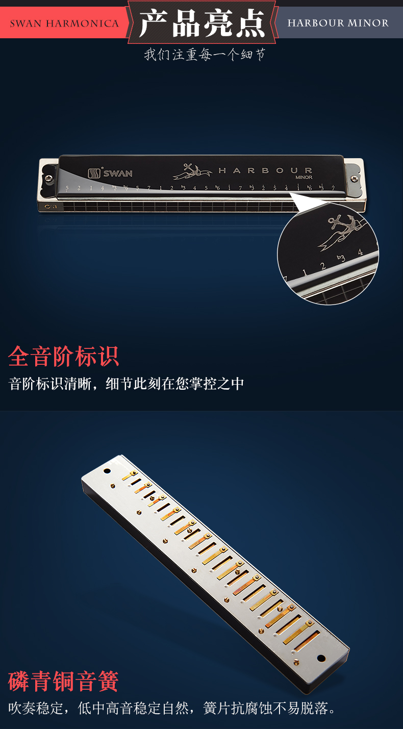 天鹅口琴24孔和声小调成人自学专业演奏儿童初学自然小调伴奏乐器