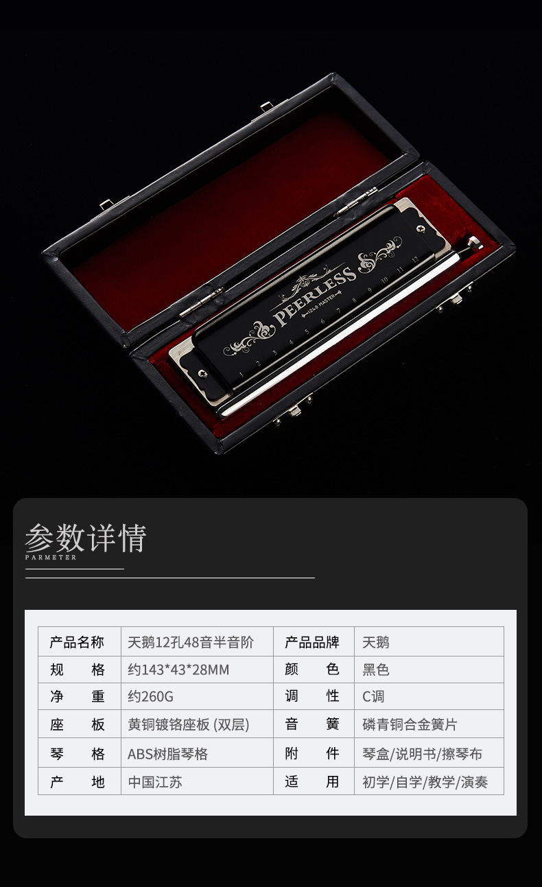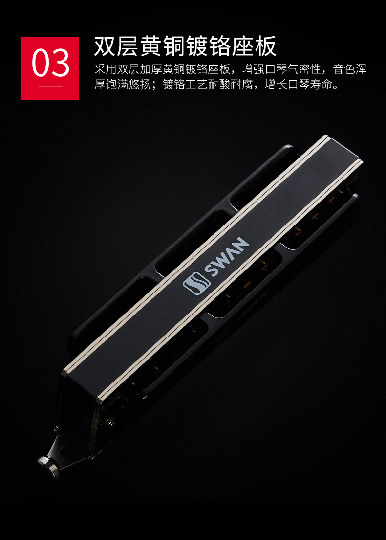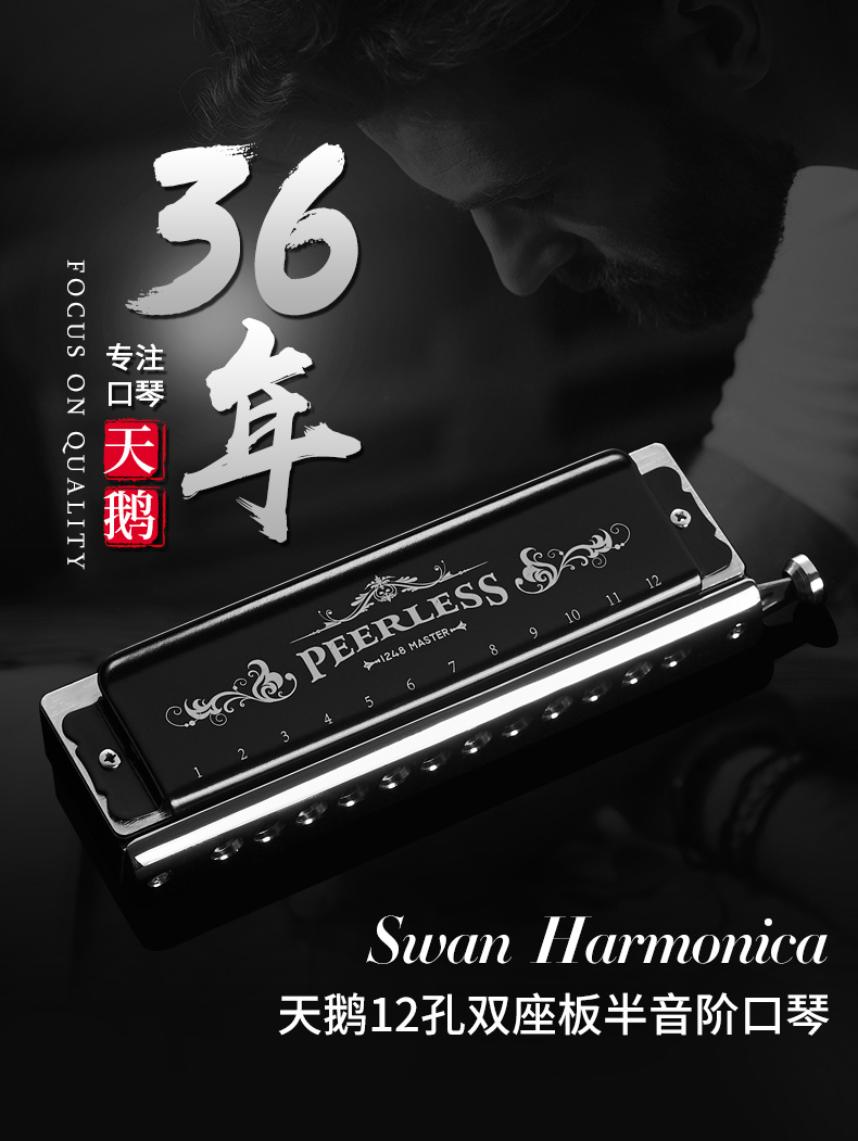 商品名称:天鹅口琴12孔48音半音阶c调口琴成人儿童专业比赛演奏练习乐器