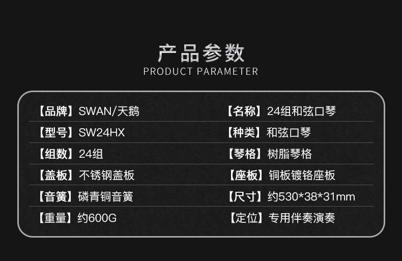 商品名称:天鹅和弦口琴24组单联男女成人自学专业乐队演奏合奏口琴