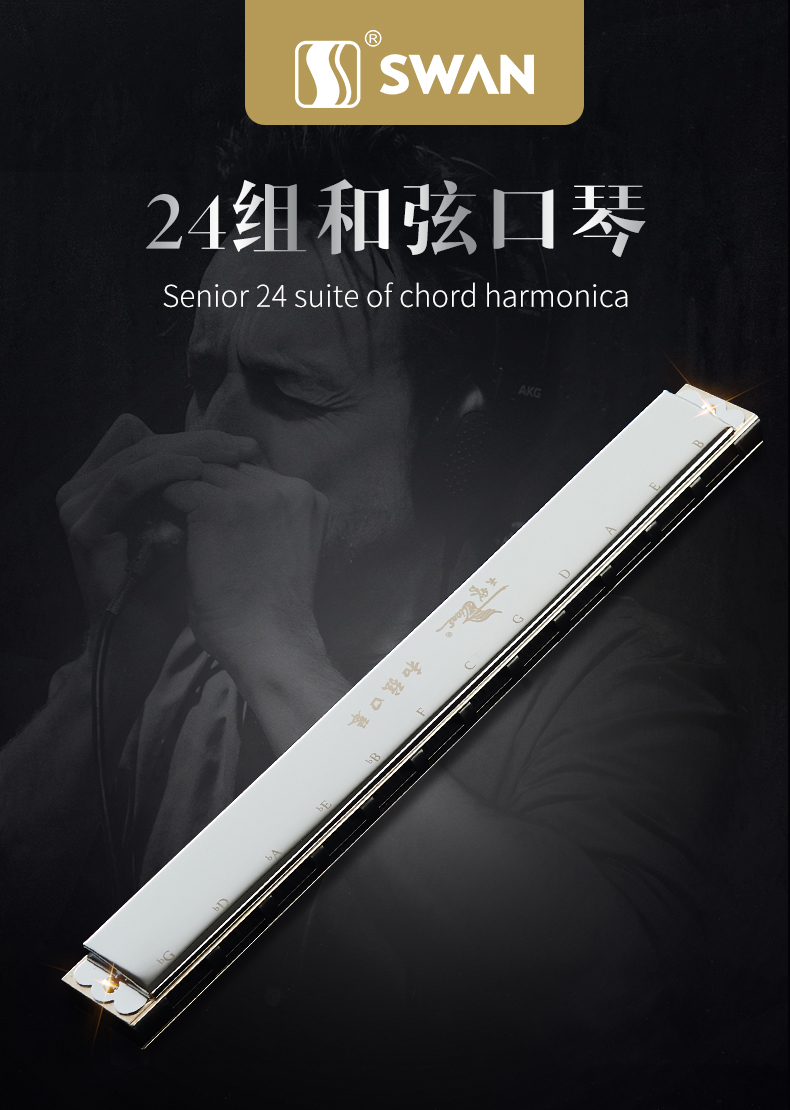 天鹅和弦口琴24组单联男女成人自学专业乐队演奏合奏口琴