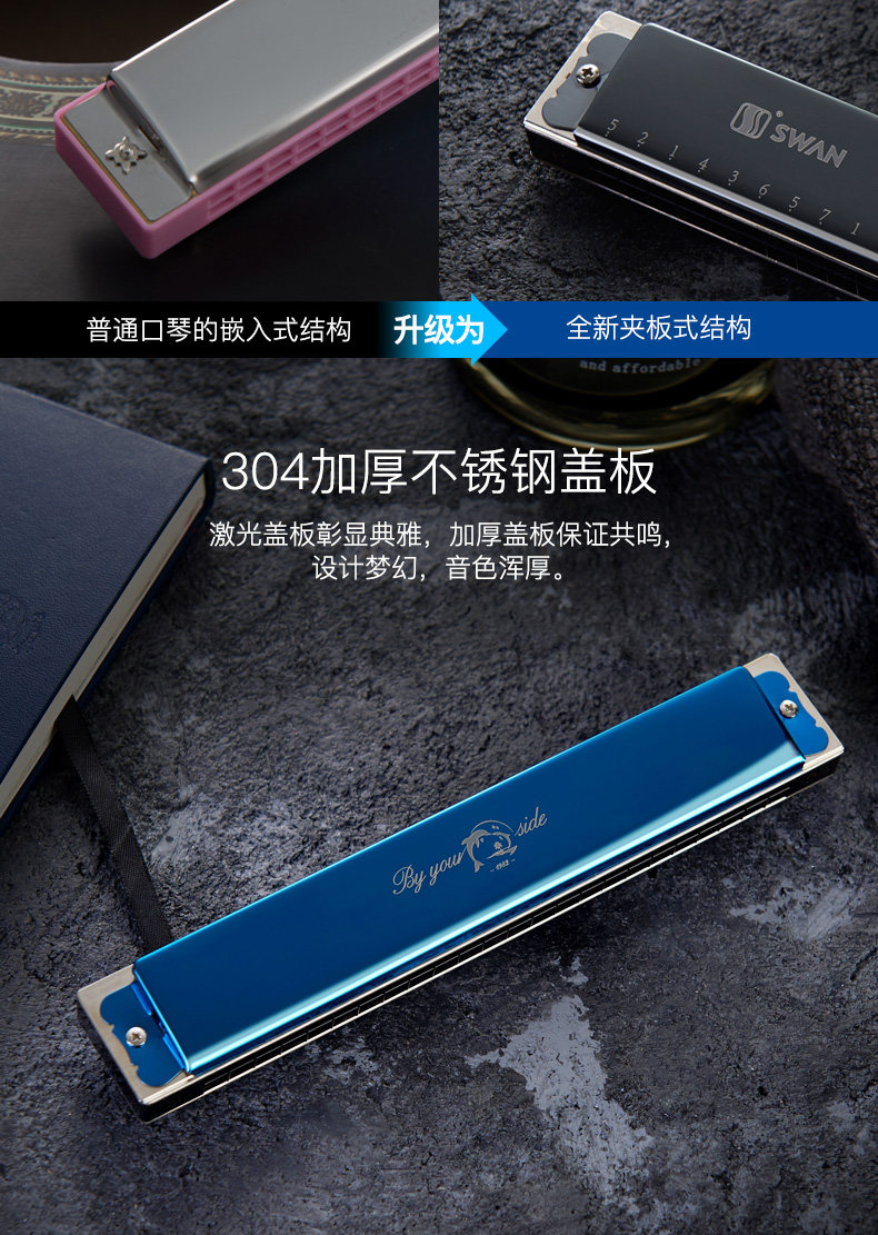 商品名称:天鹅口琴24孔初学者学生成人儿童入门复音C调高专业演奏级口风琴