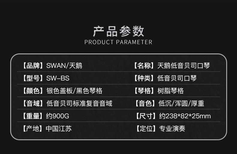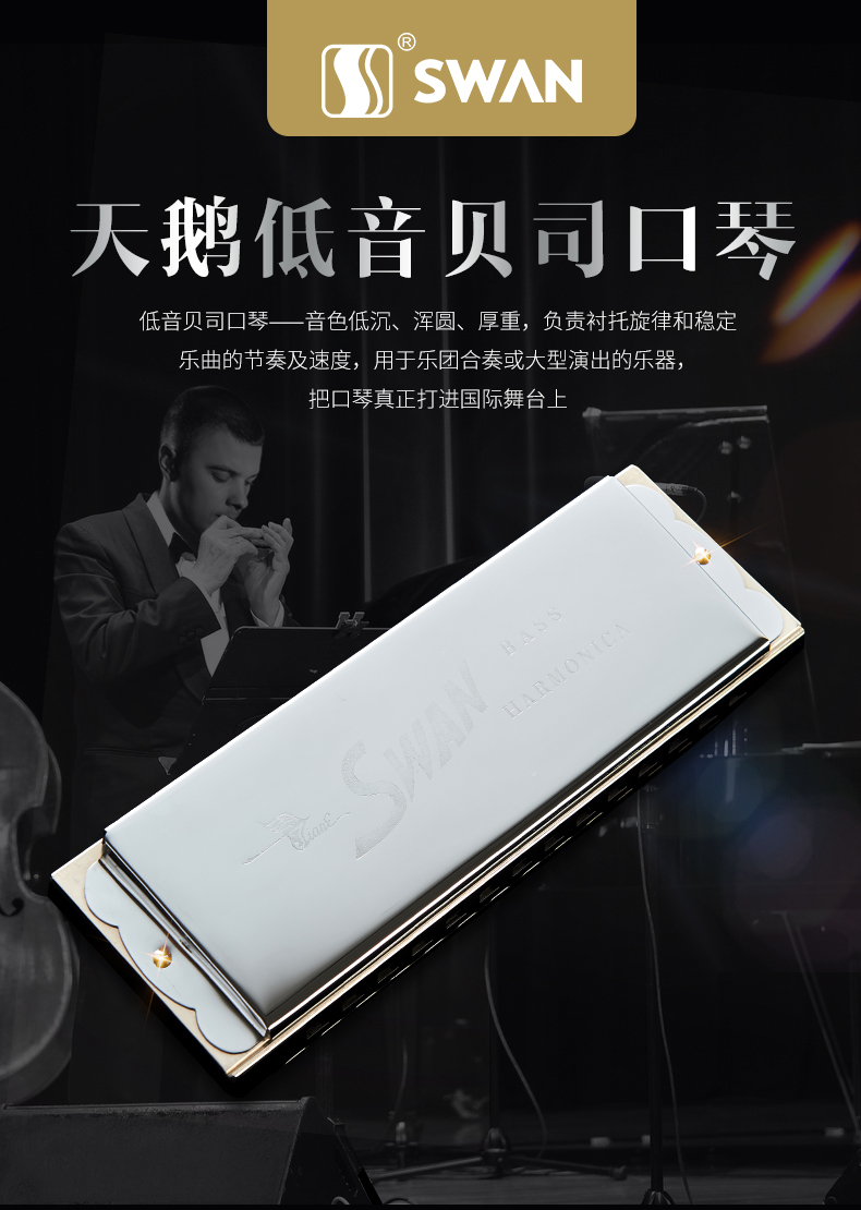 商品名称:天鹅低音贝司口琴乐队专业演奏演出团体合奏伴奏贝斯Bass口琴