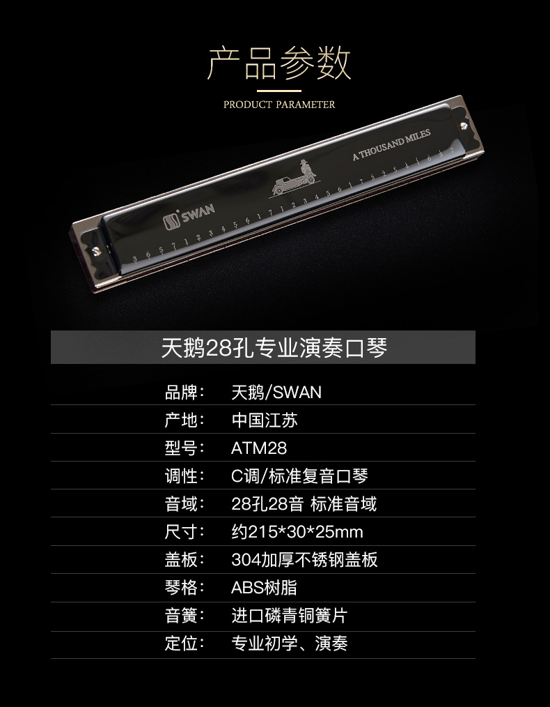商品名称:天鹅口琴高级成人初学者学生儿童专业28孔重音复音男演奏级口风琴