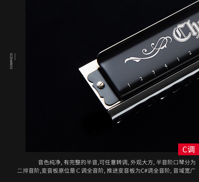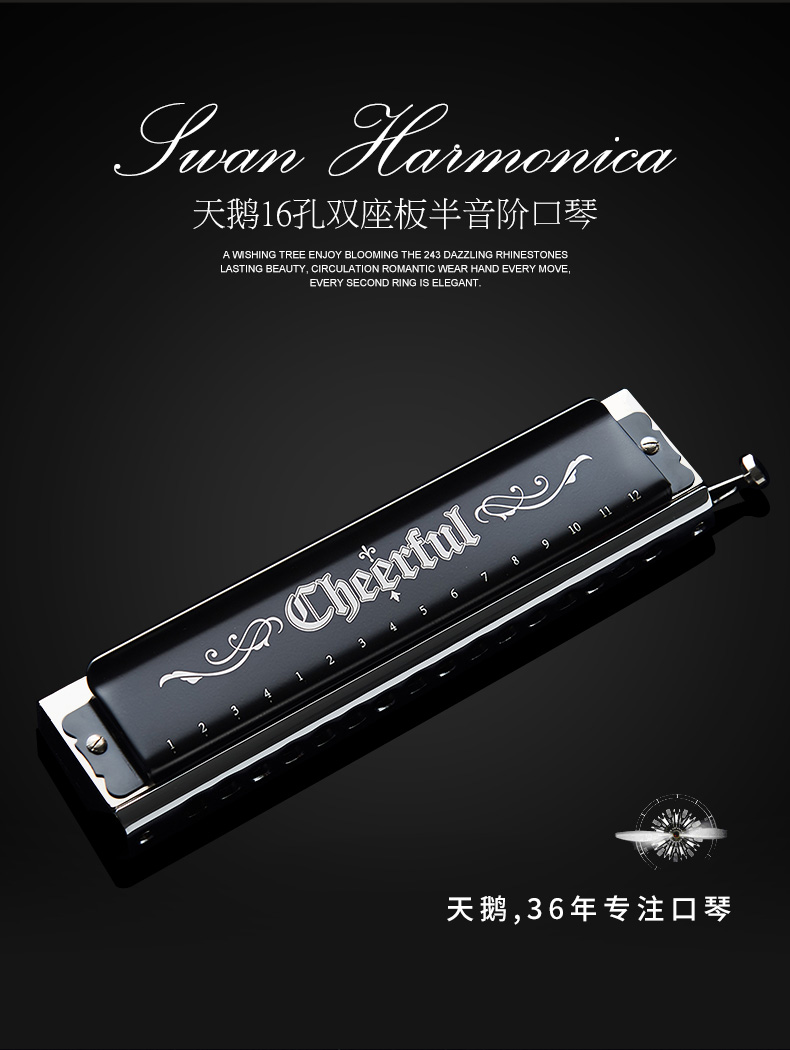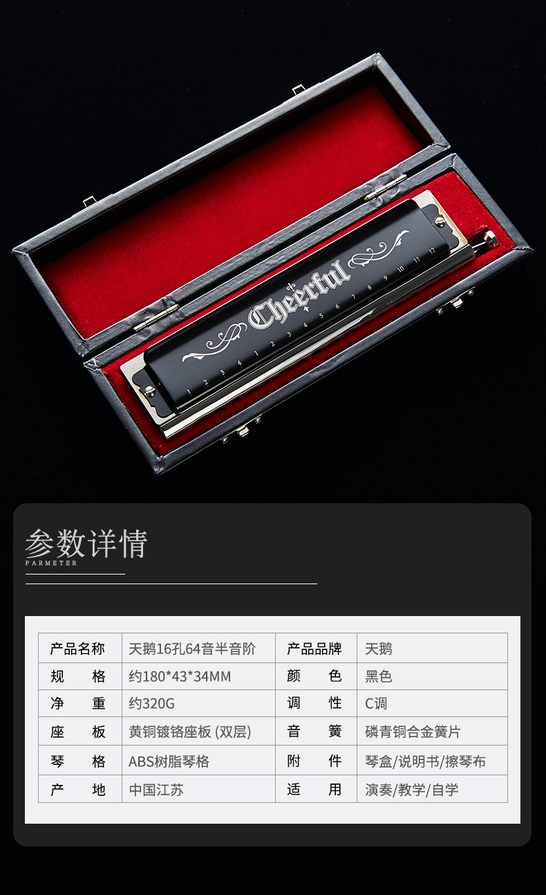 商品名称:天鹅口琴追梦人c调16孔64音半音阶双座板成人初学专业比赛演奏乐