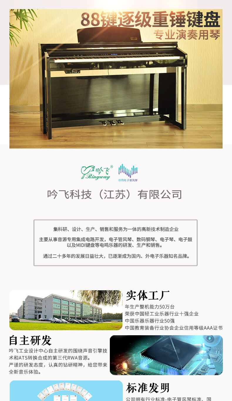 Ringway吟飞便携电钢琴RDP-10智能电子数码钢琴 配重家用成人舞台